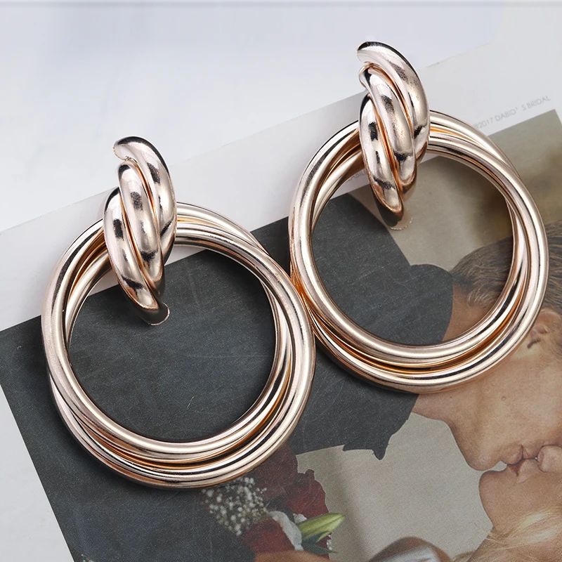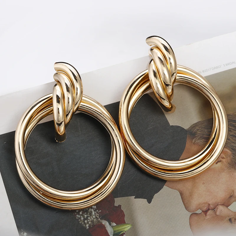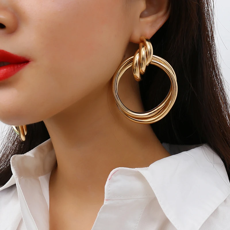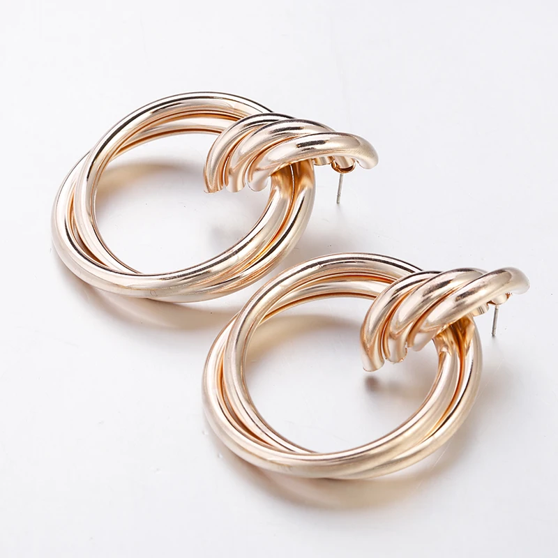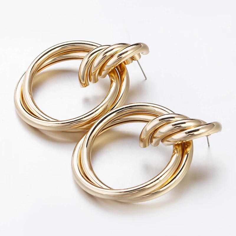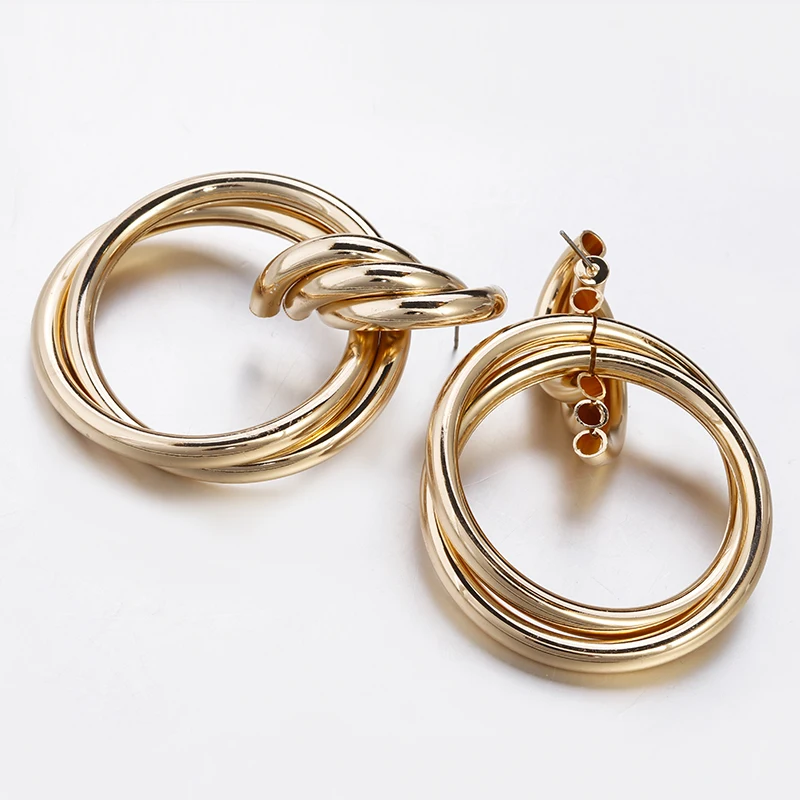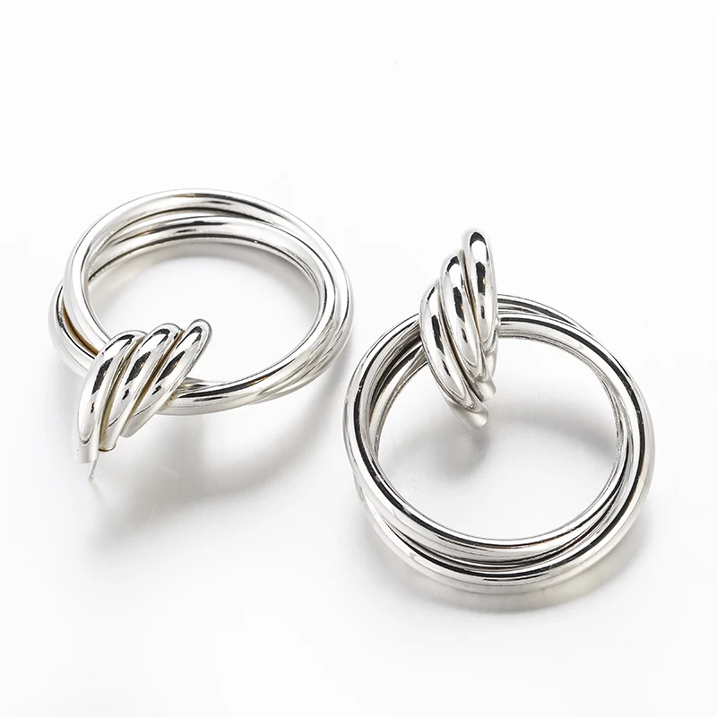 Fleepmart Fashion Gold Silver Color Twisted Metal Round Circle Earrings For Women 2021 New Simple Statement Earrings Punk Jewelry