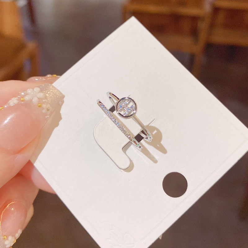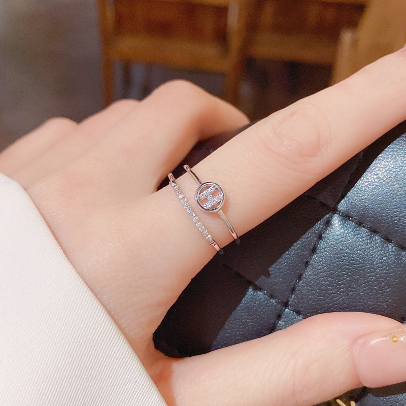 Fleepmart Fashion H Letter Circle Double Layers Open Rings For Women Korean Style Micro Pave New Jewelry