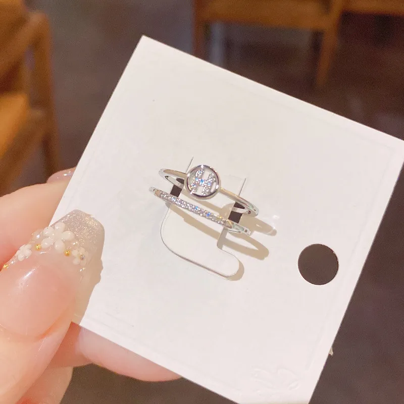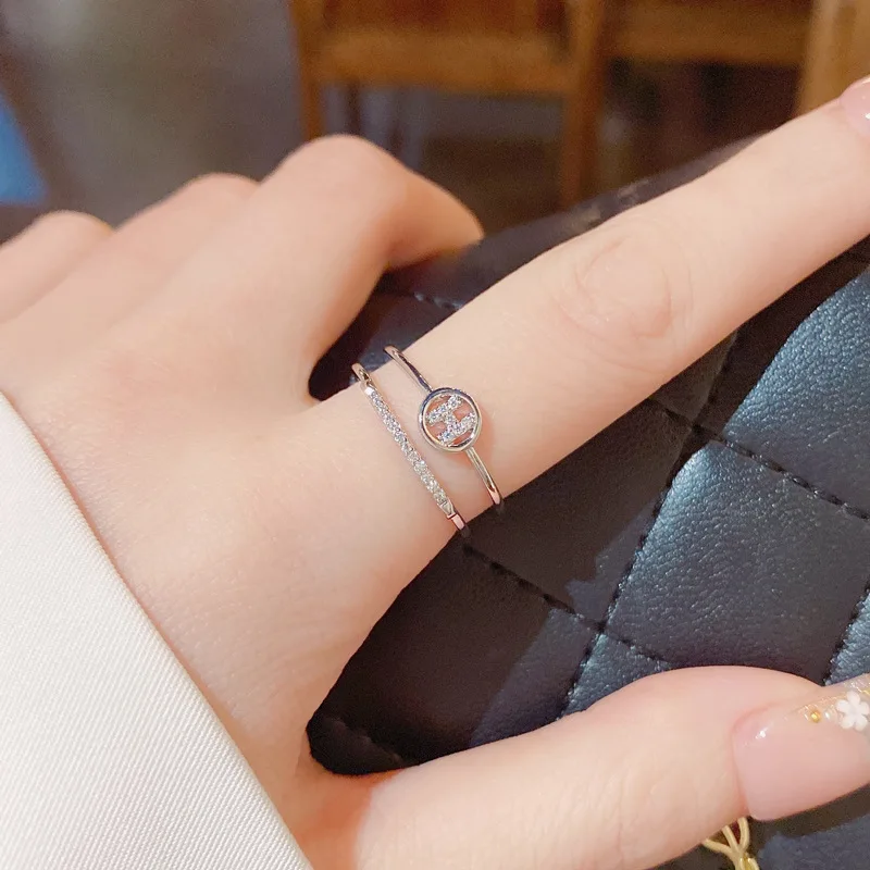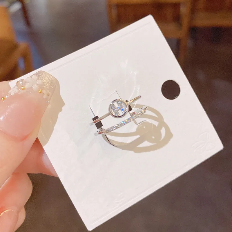 Fleepmart Fashion H Letter Circle Double Layers Open Rings For Women Korean Style Micro Pave New Jewelry