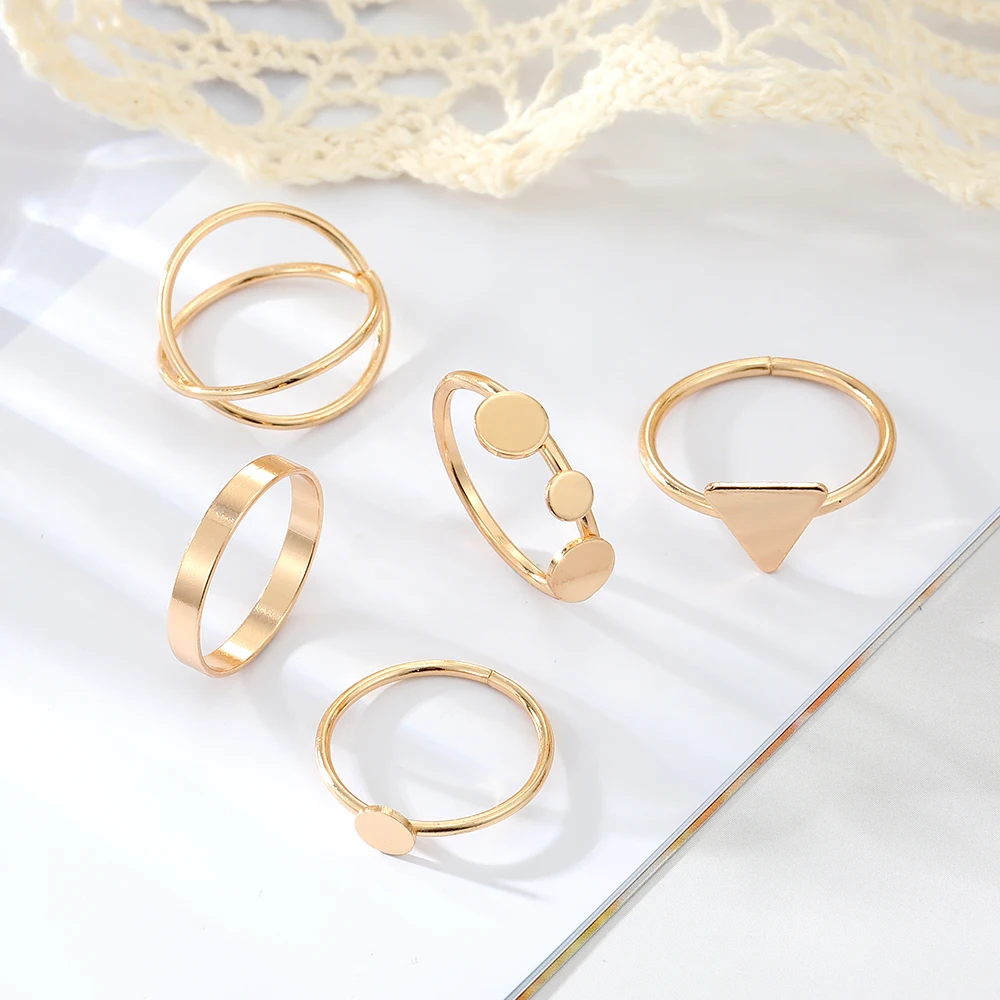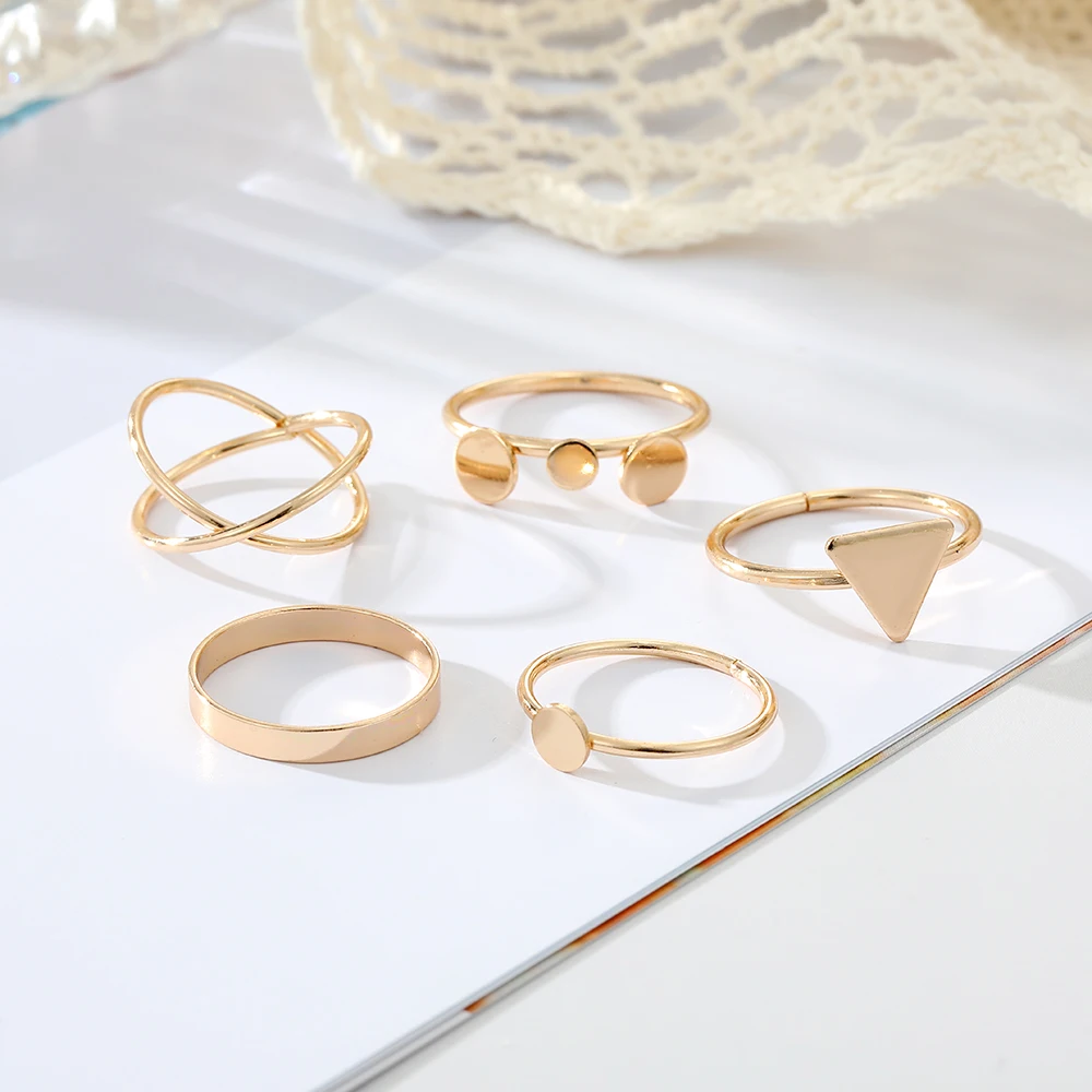 Fleepmart Fashion Hiphop Gold Rings Set For Women Minimalist Punk Geometric Crossed Fingers Knuckle Rings 2022 Trend Jewelry Party