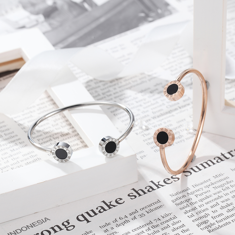 Fleepmart Fashion Hot Selling Women’s Jewelry, Roman Numerals Black Enamel Stainless Steel Open Bracelet Party Gift Bangle Wholesale