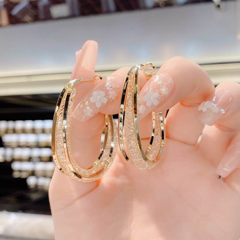Fleepmart Fashion Luxury Shiny Crystals Hoop Earrings Exaggerate Gold Silver Color Rhinestone Geometric Earrings For Women
