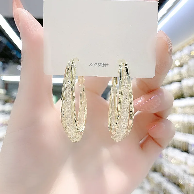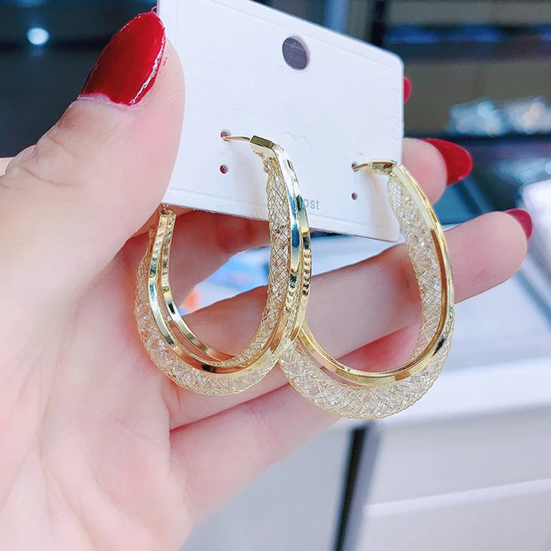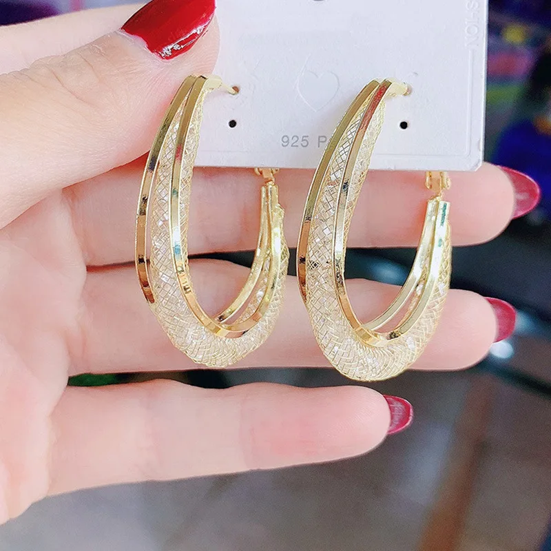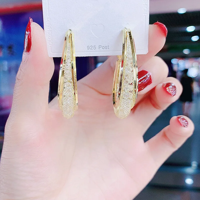 Fleepmart Fashion Luxury Shiny Crystals Hoop Earrings Exaggerate Gold Silver Color Rhinestone Geometric Earrings For Women