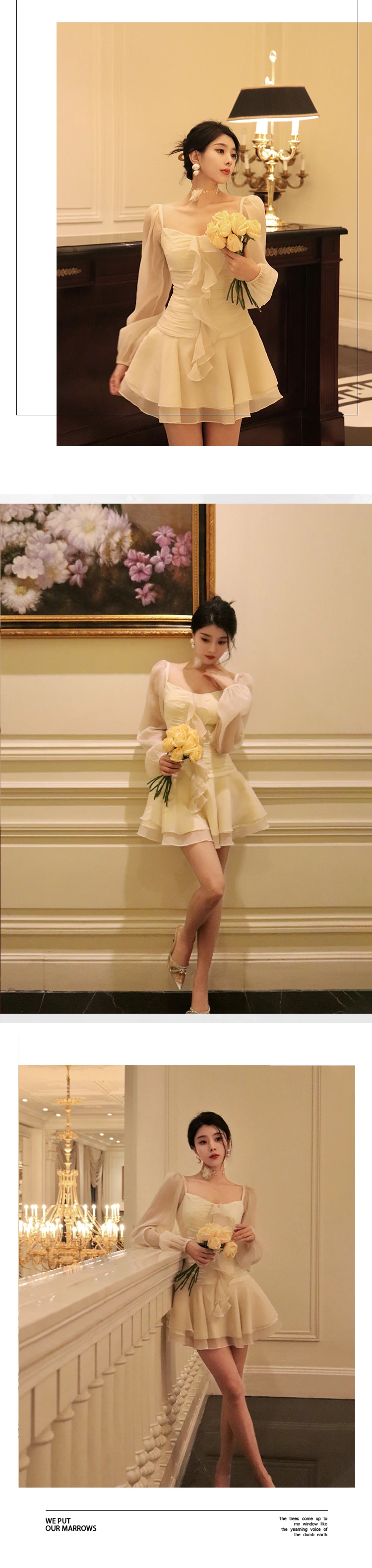 Fleepmart Fashion New Women Elegant Casual A-Line Mini Dress Vintage Solid Party Chic Birthday Evening Vestidos Female One Pieces Robe