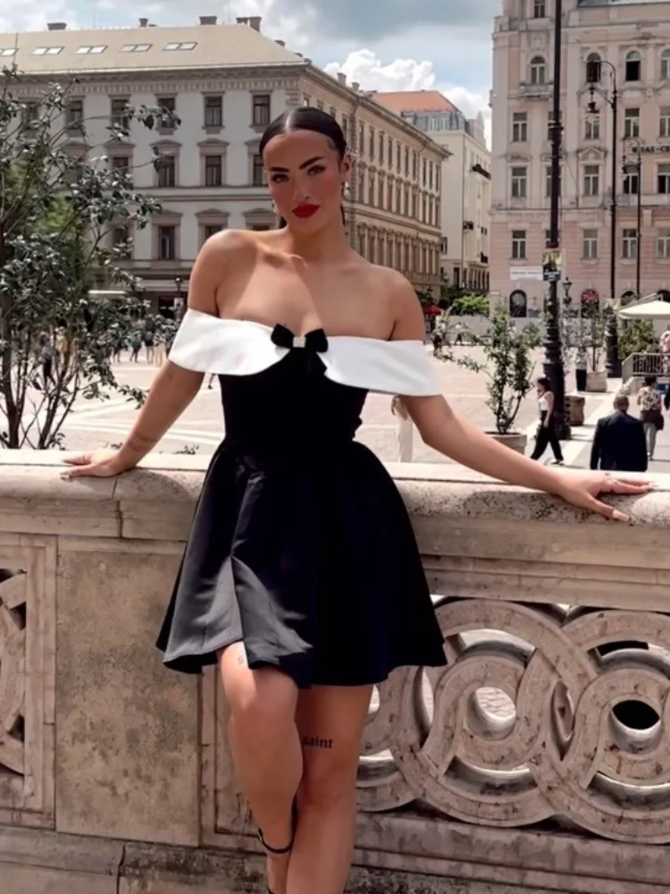 Fleepmart Fashion Off Shoulder A-line Mini Dress Elegant Splicing Slim Backless Pleated Women’s Dress