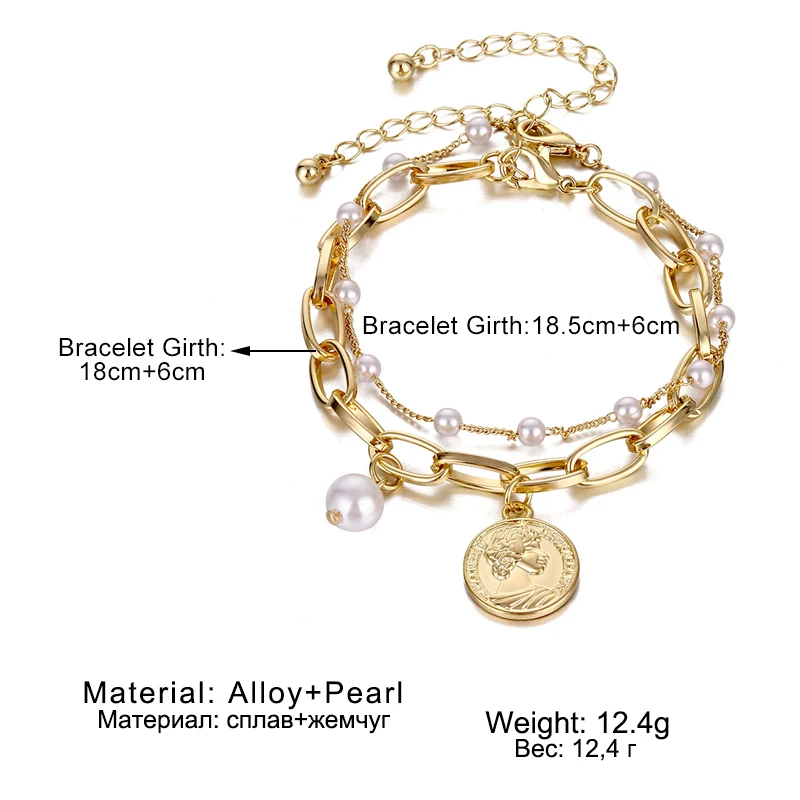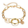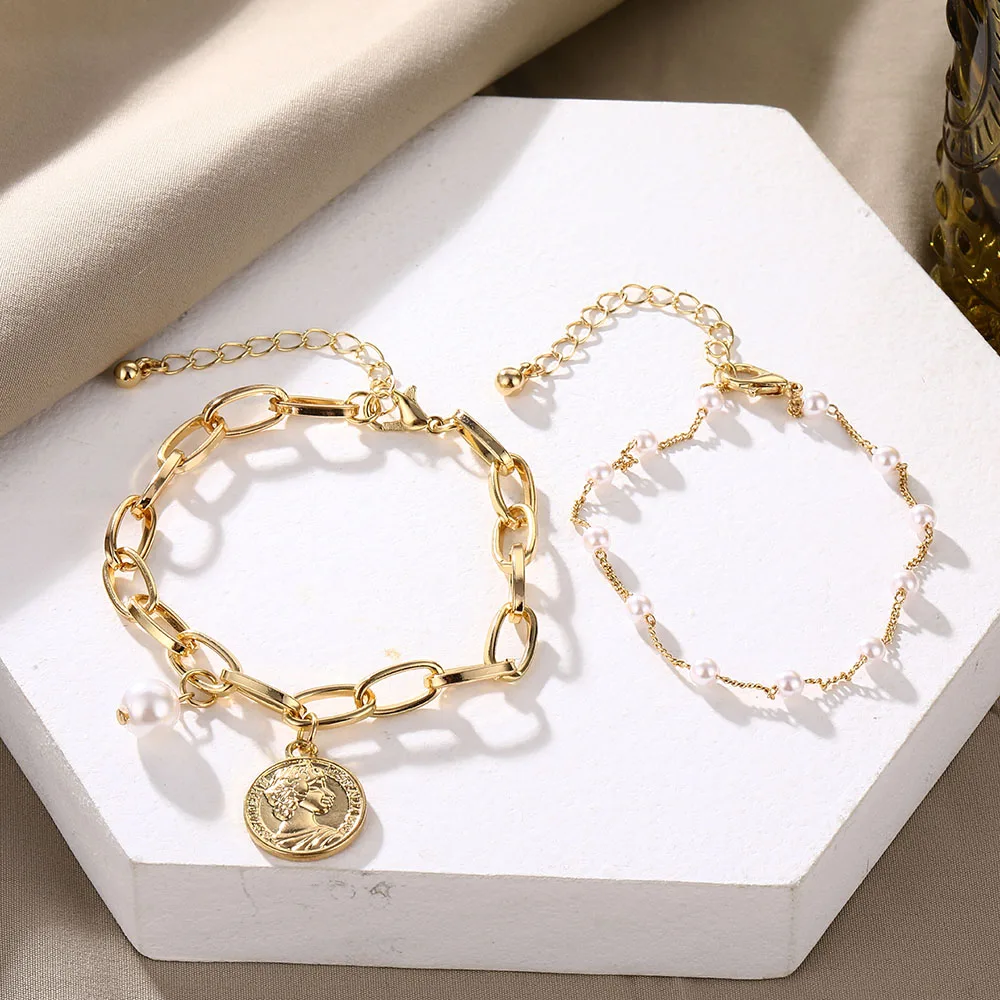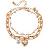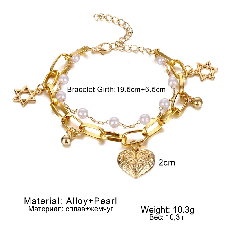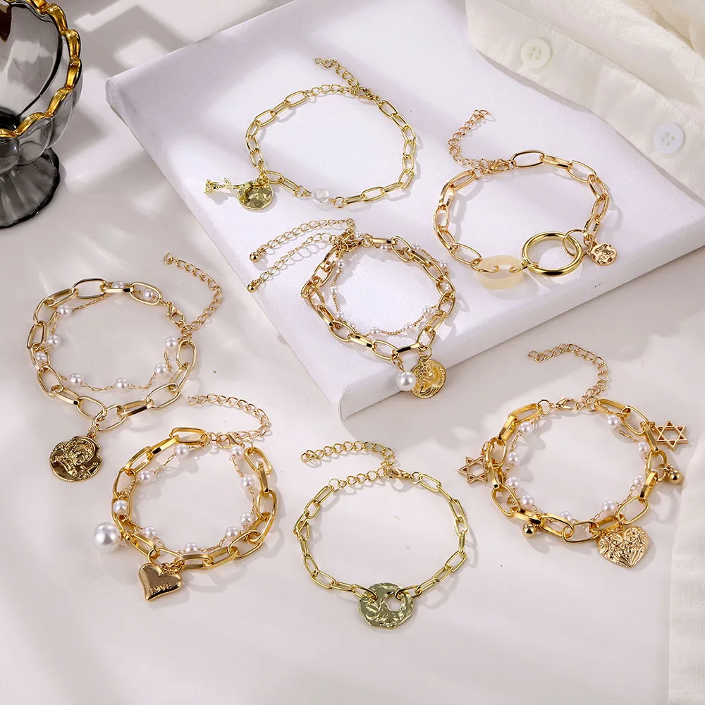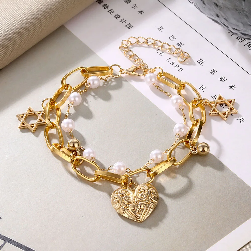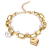 fleepmart Fashion Pearl Alloy Pendant Thick Chain Bracelet for Women Charm Imitation Pearl Heart Bracelet Bangle Party Jewelry