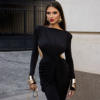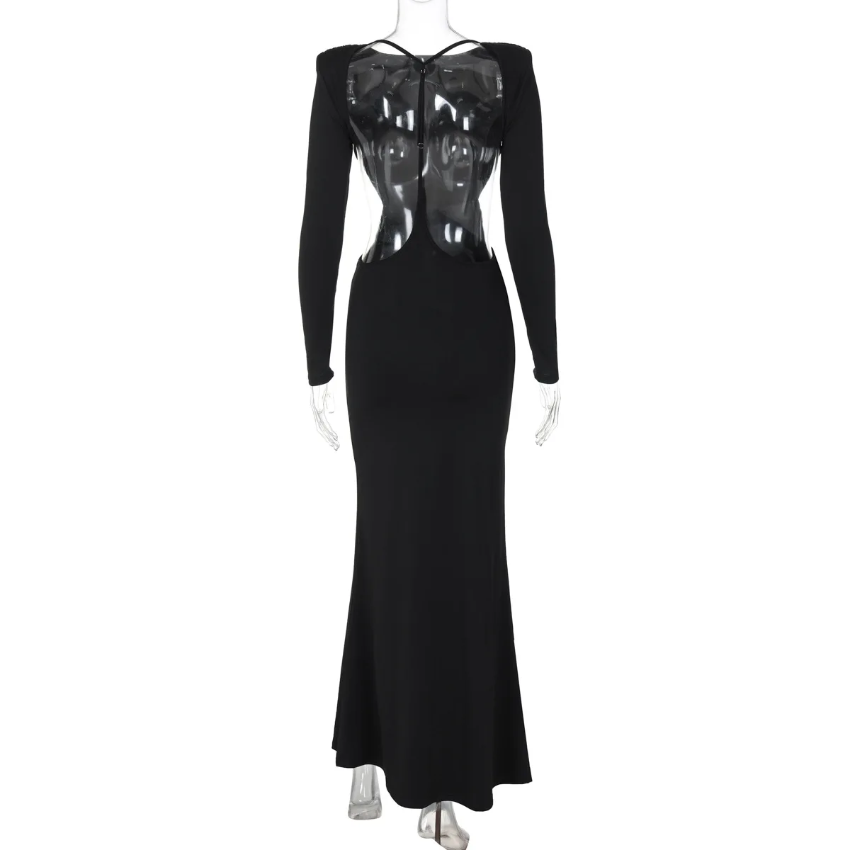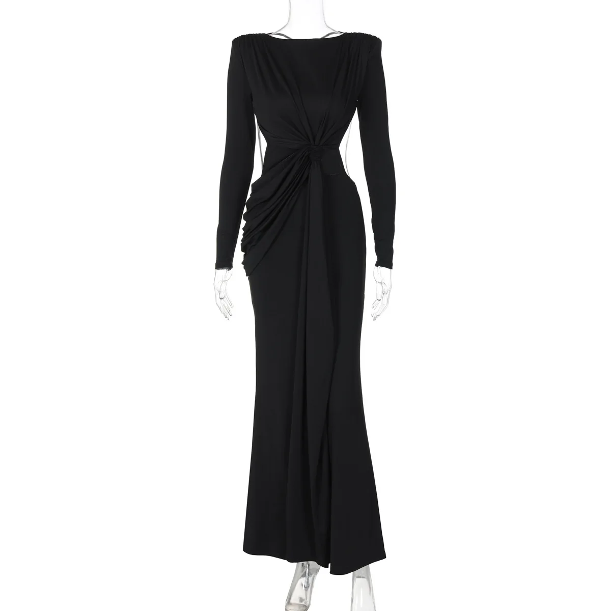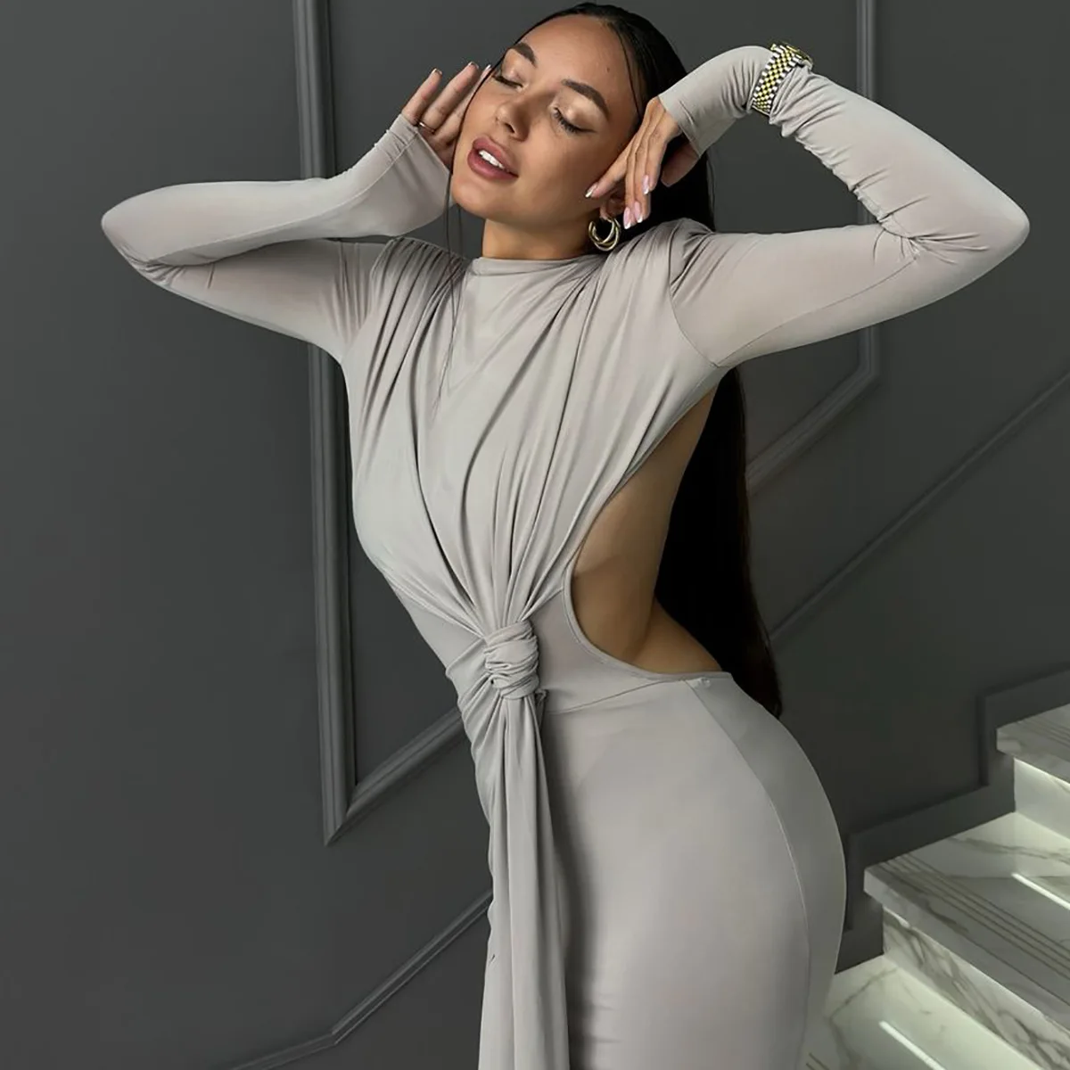 Fleepmart Fashion Ruched Cut Out Sexy Backless Maxi Gown Club Fall Long Sleeve Draped Dress Bodycon Clothes