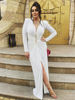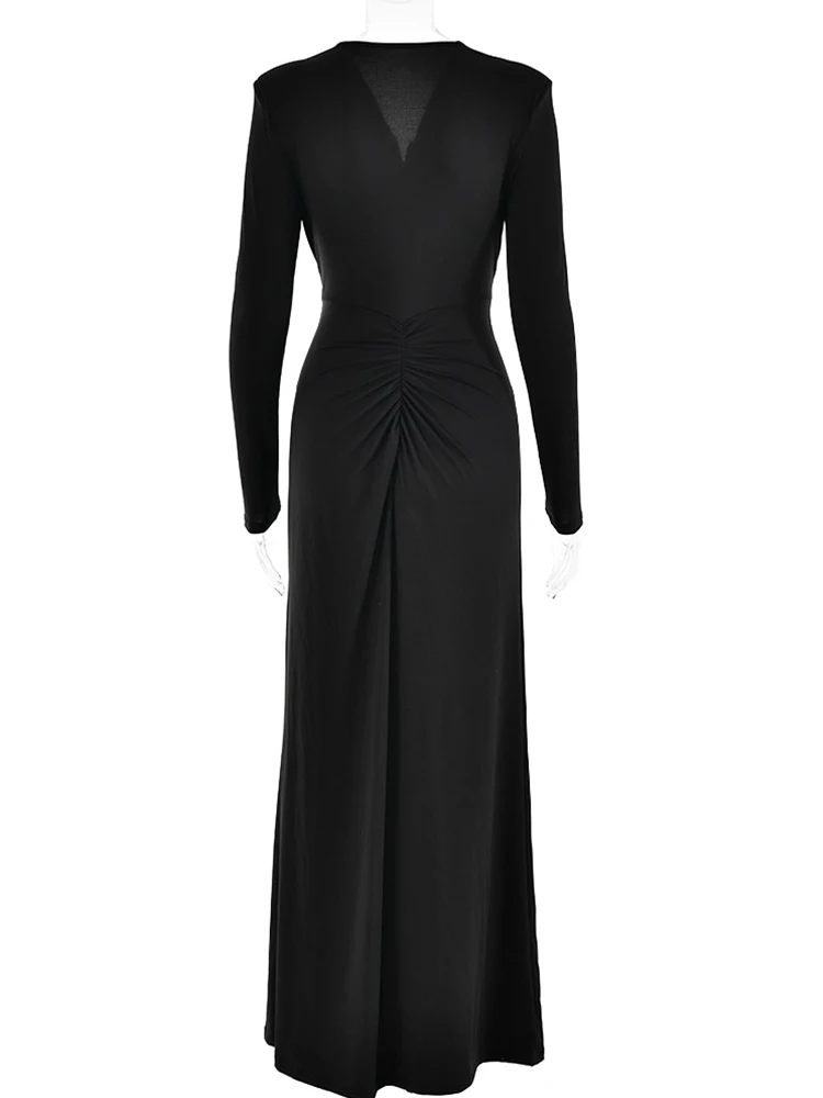 Fleepmart Fashion Sexy Elegant Maxi Dresses Streetwear V-neck Casual Solid High Split Long Sleeve Slim Sheath Party Women Vestidos