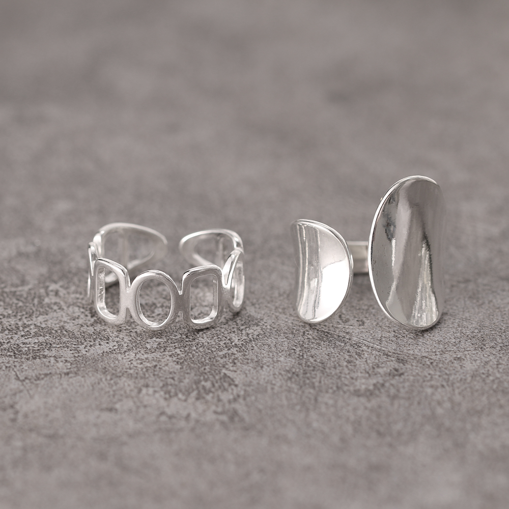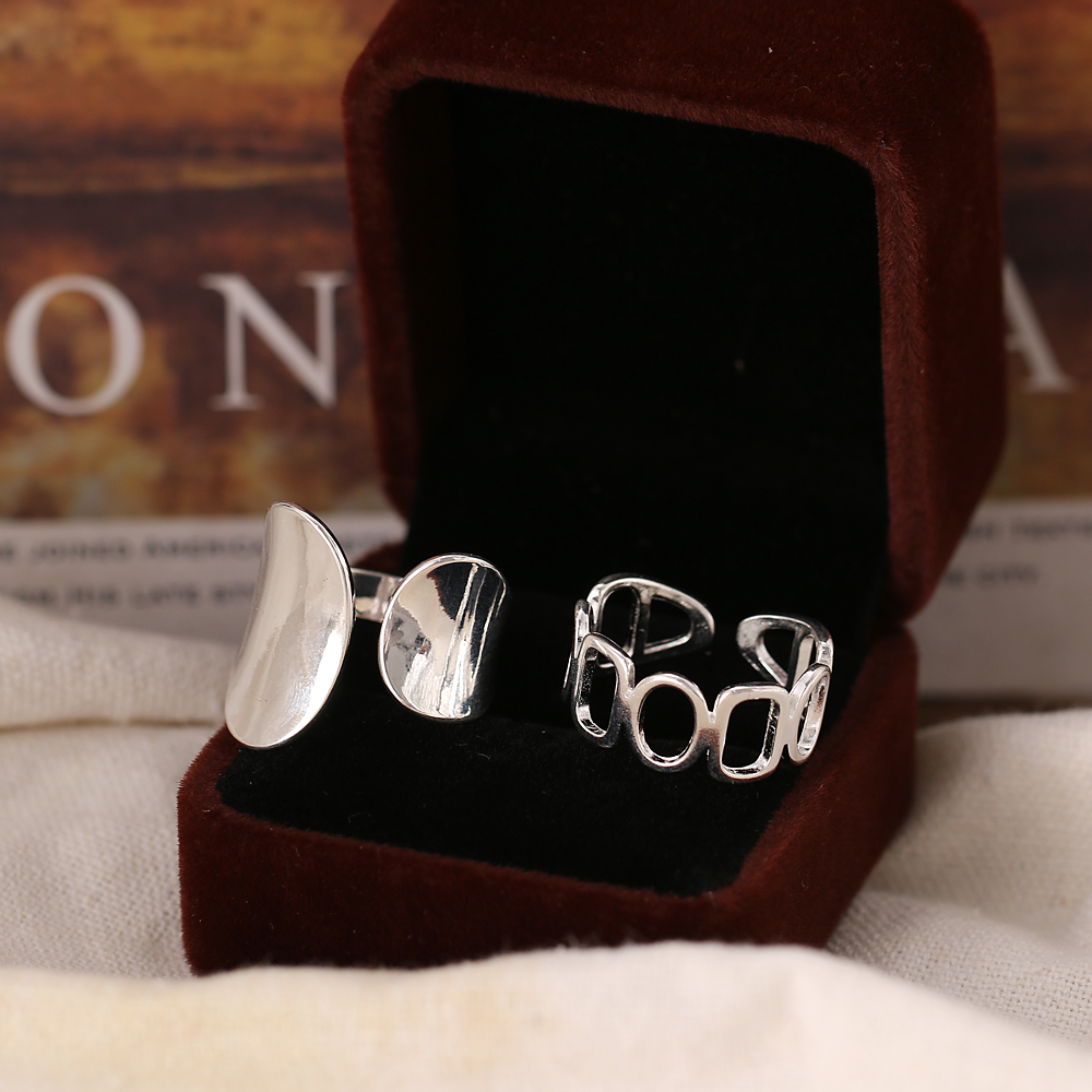 Fleepmart Fashion Silver Color Width Rings Statement Women’s Punk Hollow Geometric Metal Wide Rings 2023 Trend Jewelry Gifts