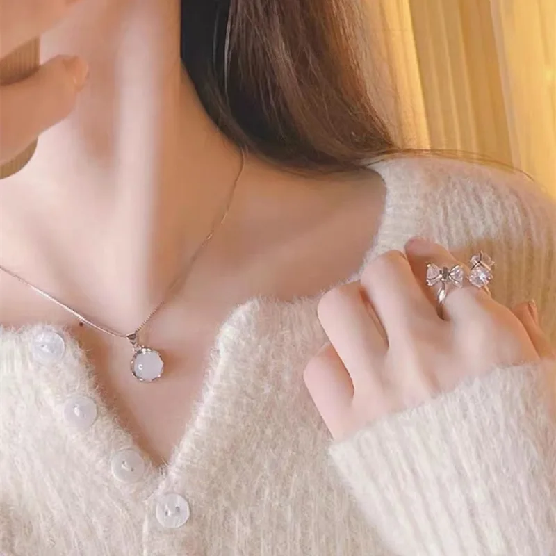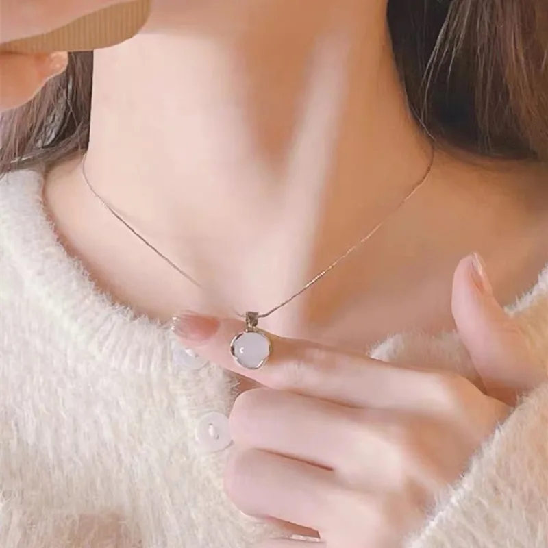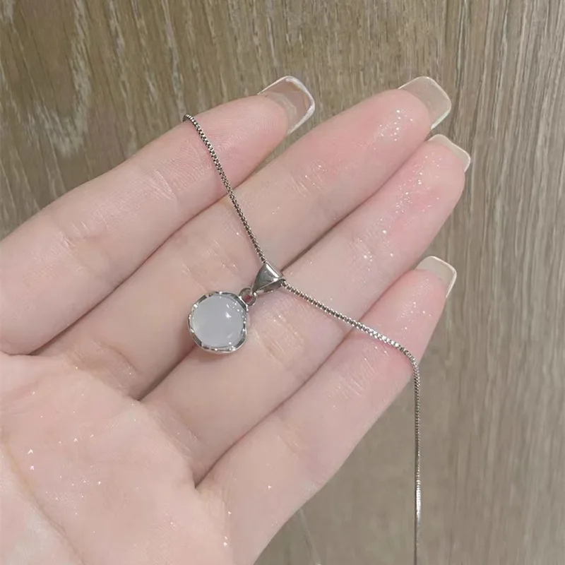 Fleepmart Fashion Silver Women Jewelry Clavicle Chain Plated White Round Moonstone PendantI Necklaces Daily Accessories