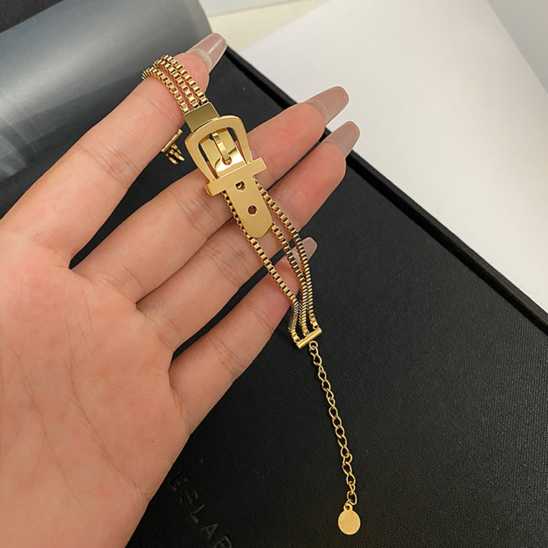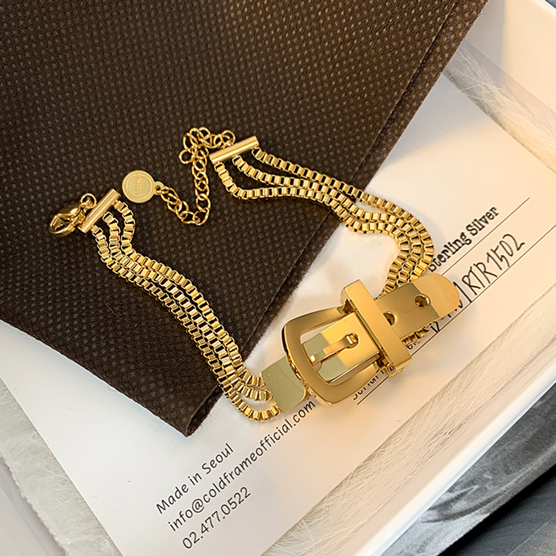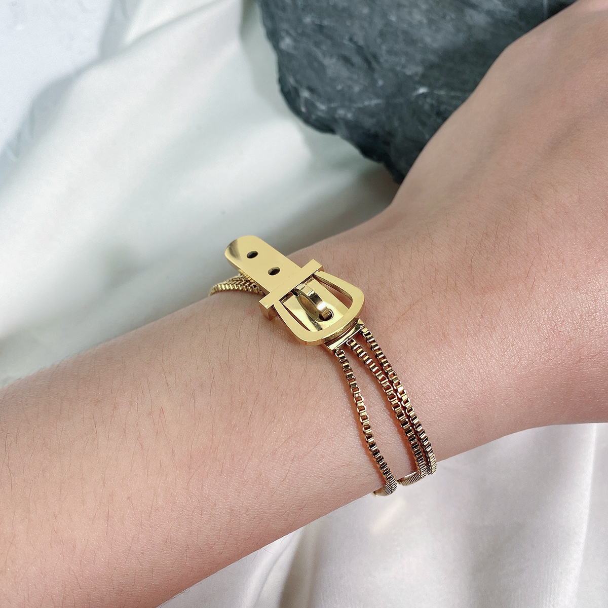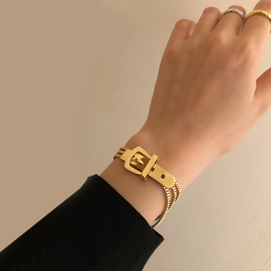 Fleepmart Fashion Stainless Steel Belt Shape Strap Charm Gold Bangle Women Jewelry Gift Punk Layered Bangle Bracelets High Quality