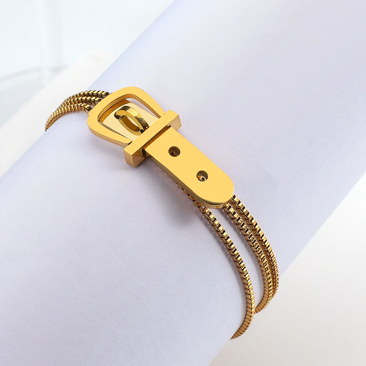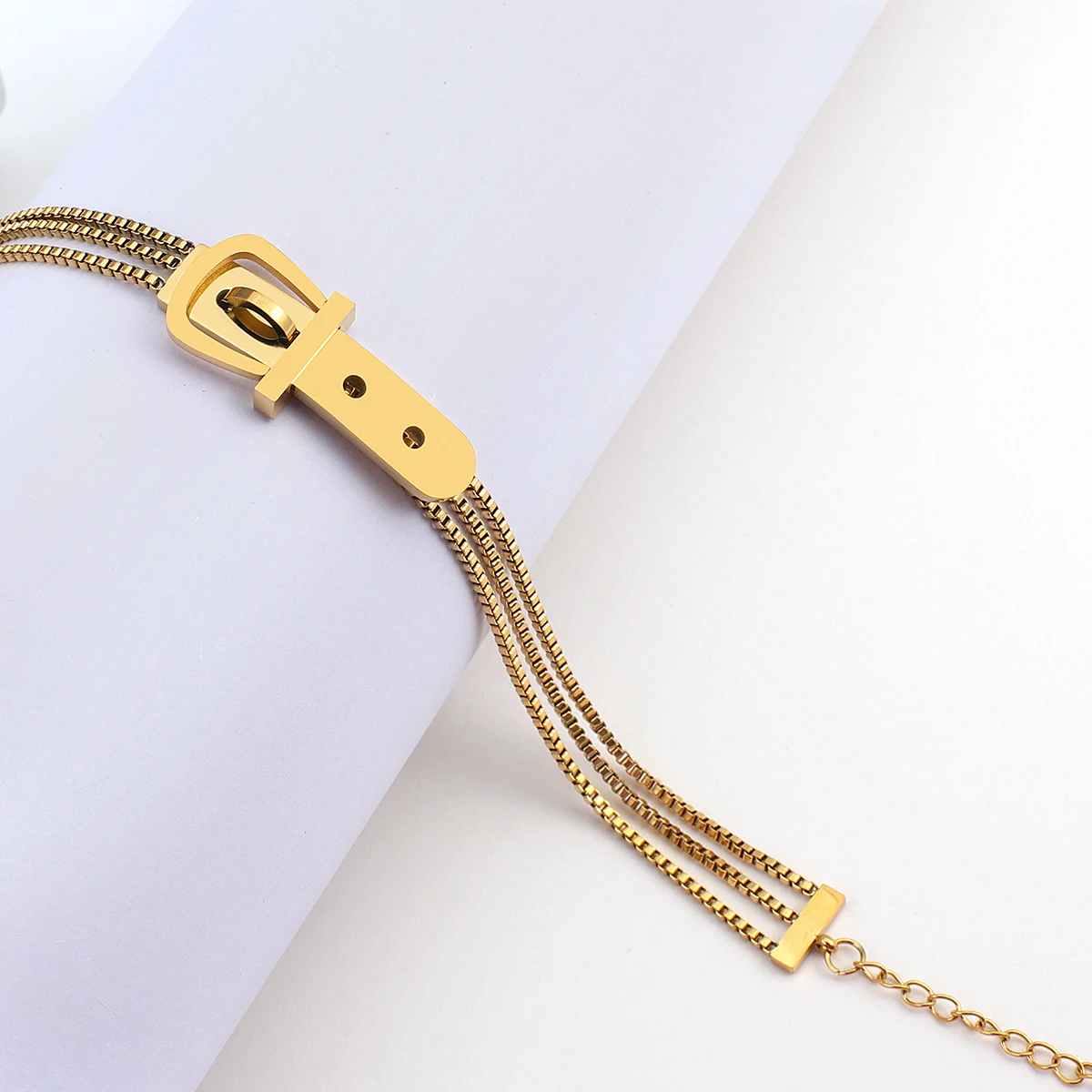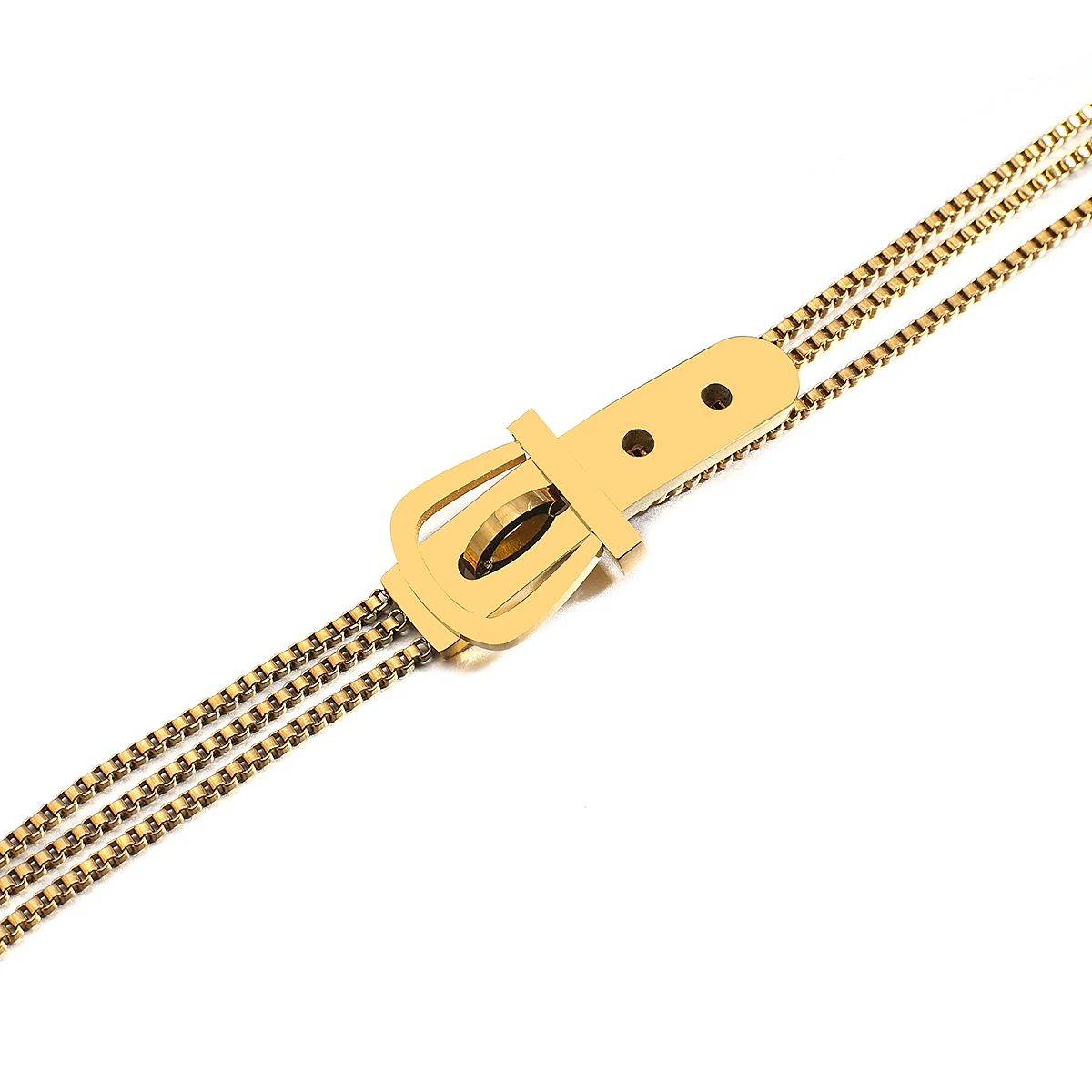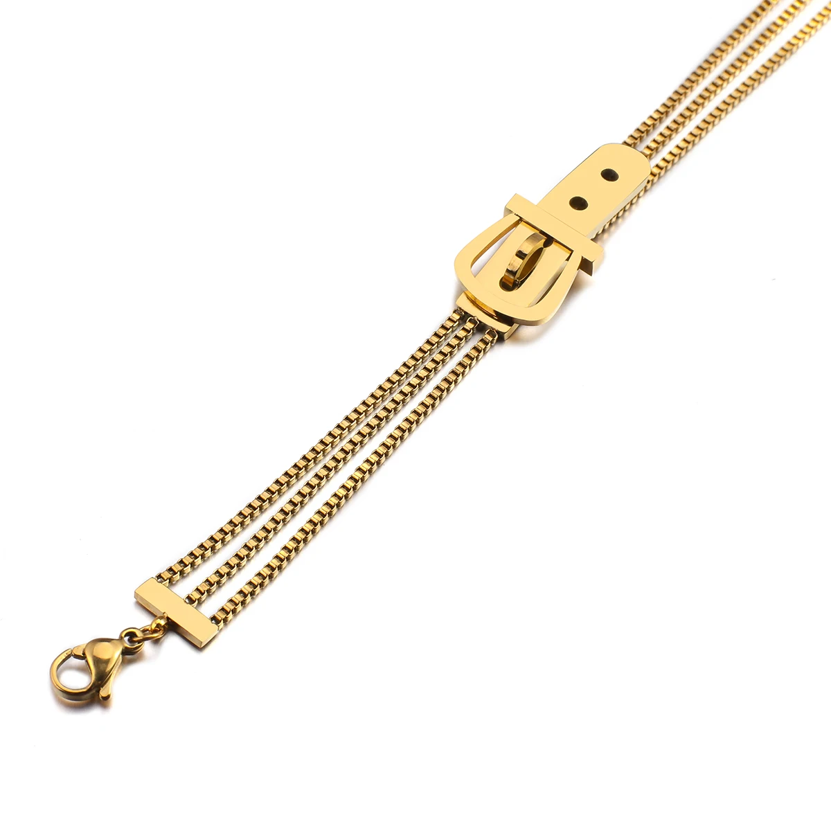Fleepmart Fashion Stainless Steel Belt Shape Strap Charm Gold Bangle Women Jewelry Gift Punk Layered Bangle Bracelets High Quality