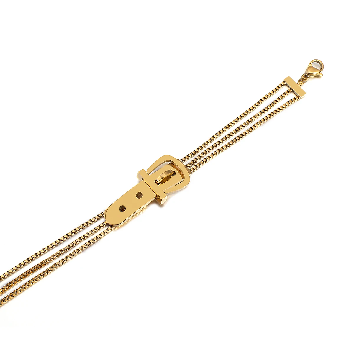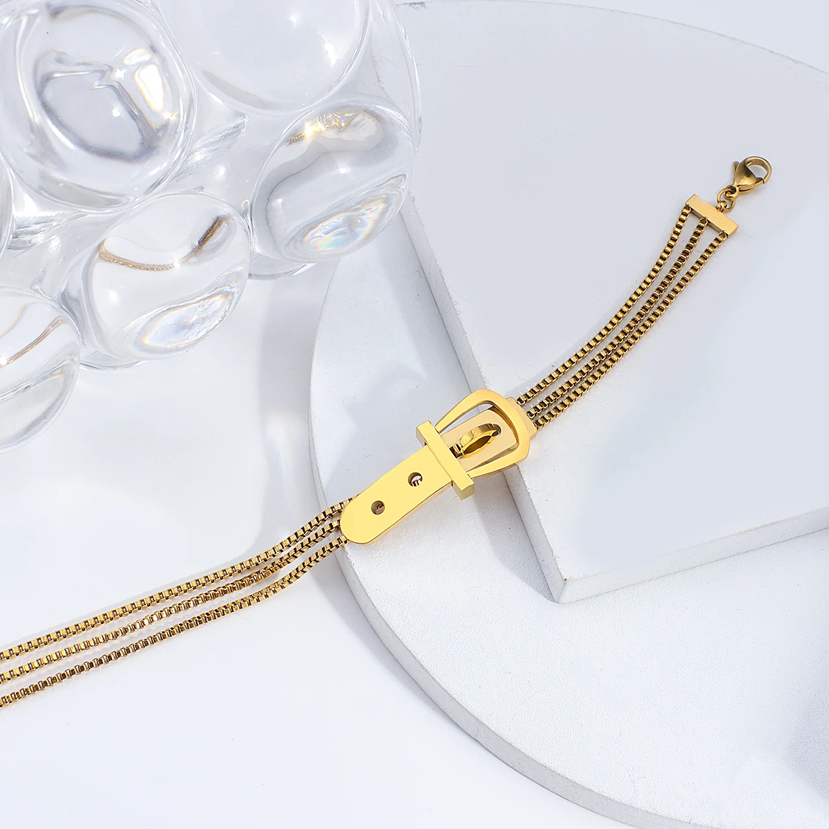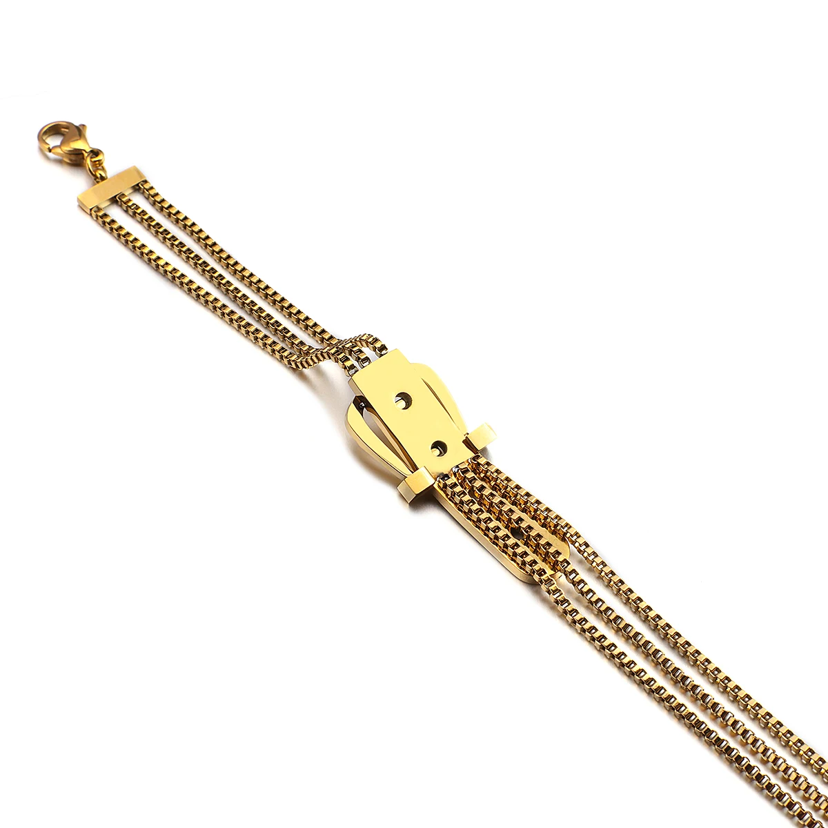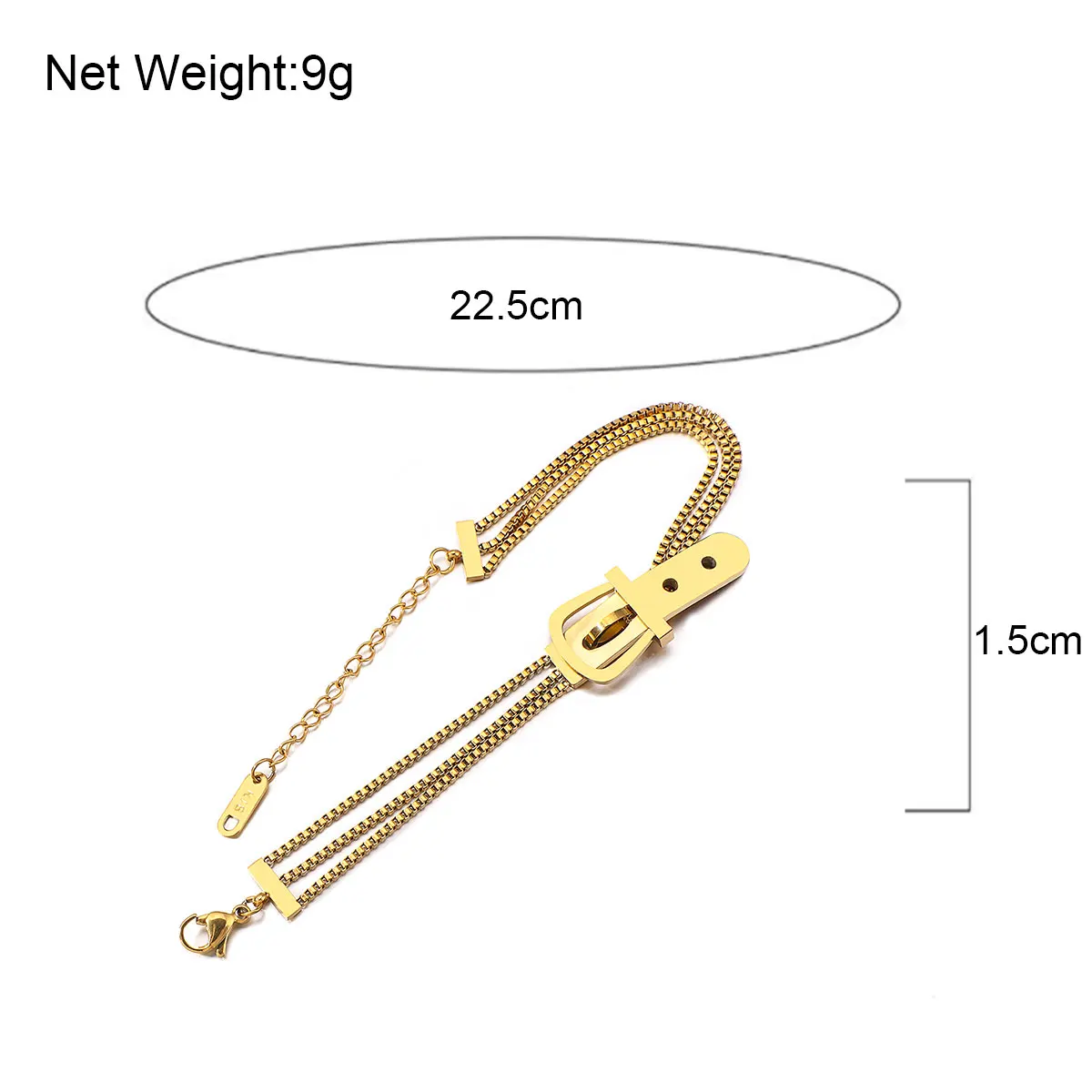 Fleepmart Fashion Stainless Steel Belt Shape Strap Charm Gold Bangle Women Jewelry Gift Punk Layered Bangle Bracelets High Quality