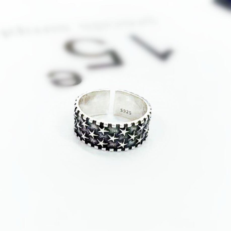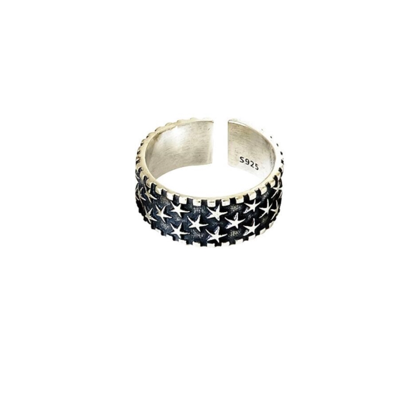 Fleepmart Fashion Stars Retro Thai Silver Personality Exquisite 925 Sterling Silver Female Resizable Opening Rings