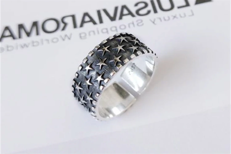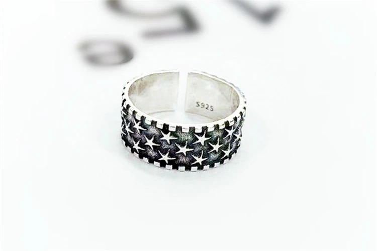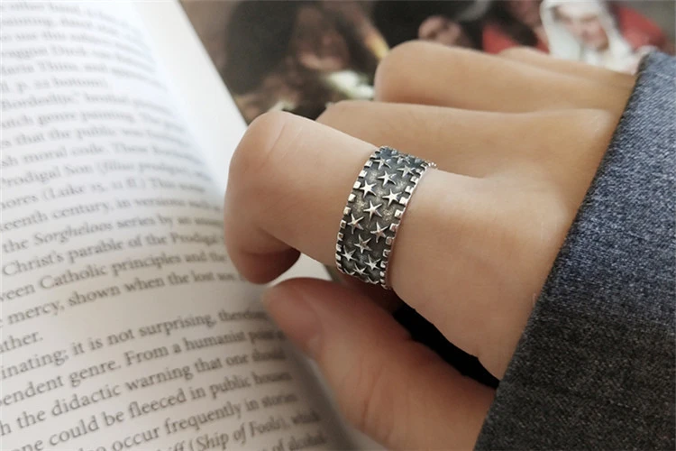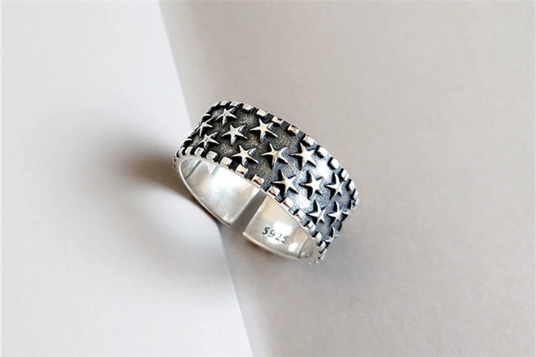 Fleepmart Fashion Stars Retro Thai Silver Personality Exquisite 925 Sterling Silver Female Resizable Opening Rings