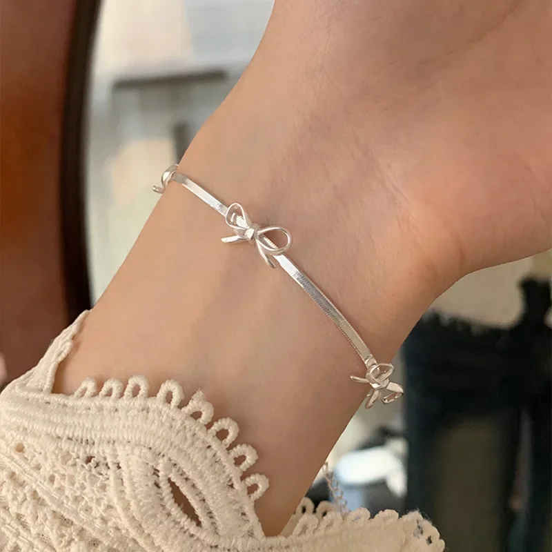 Fleepmart Fashion Sweet Bow Women Girls Sparkling Delicate Ribbon Bowknot Snake Bones Chain Bracelet Party Jewelry