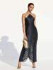 Fashion Tassel Back Slit Halter Evening Dress Women