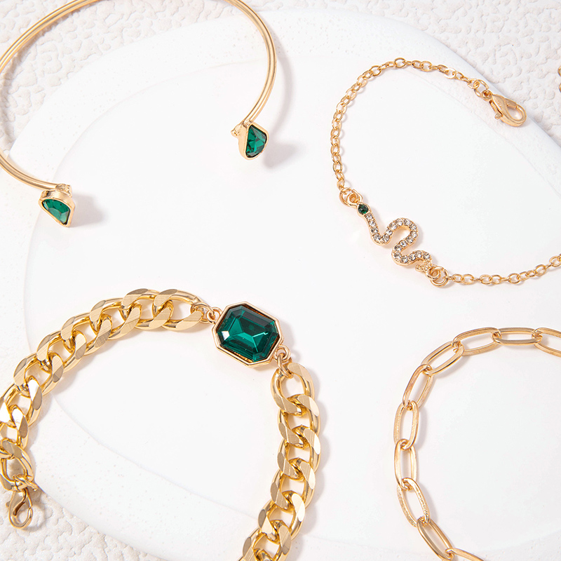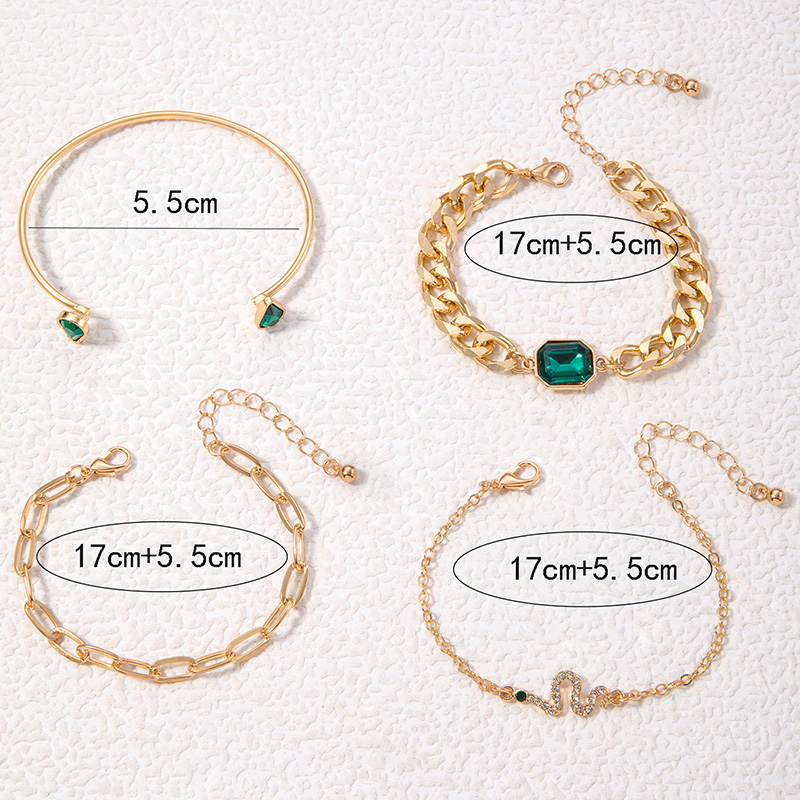 Fleepmart Fashion Versatile Green Diamond Bracelet Set Imitation Gem Personalized Snake Multi layered Bracelet for Women