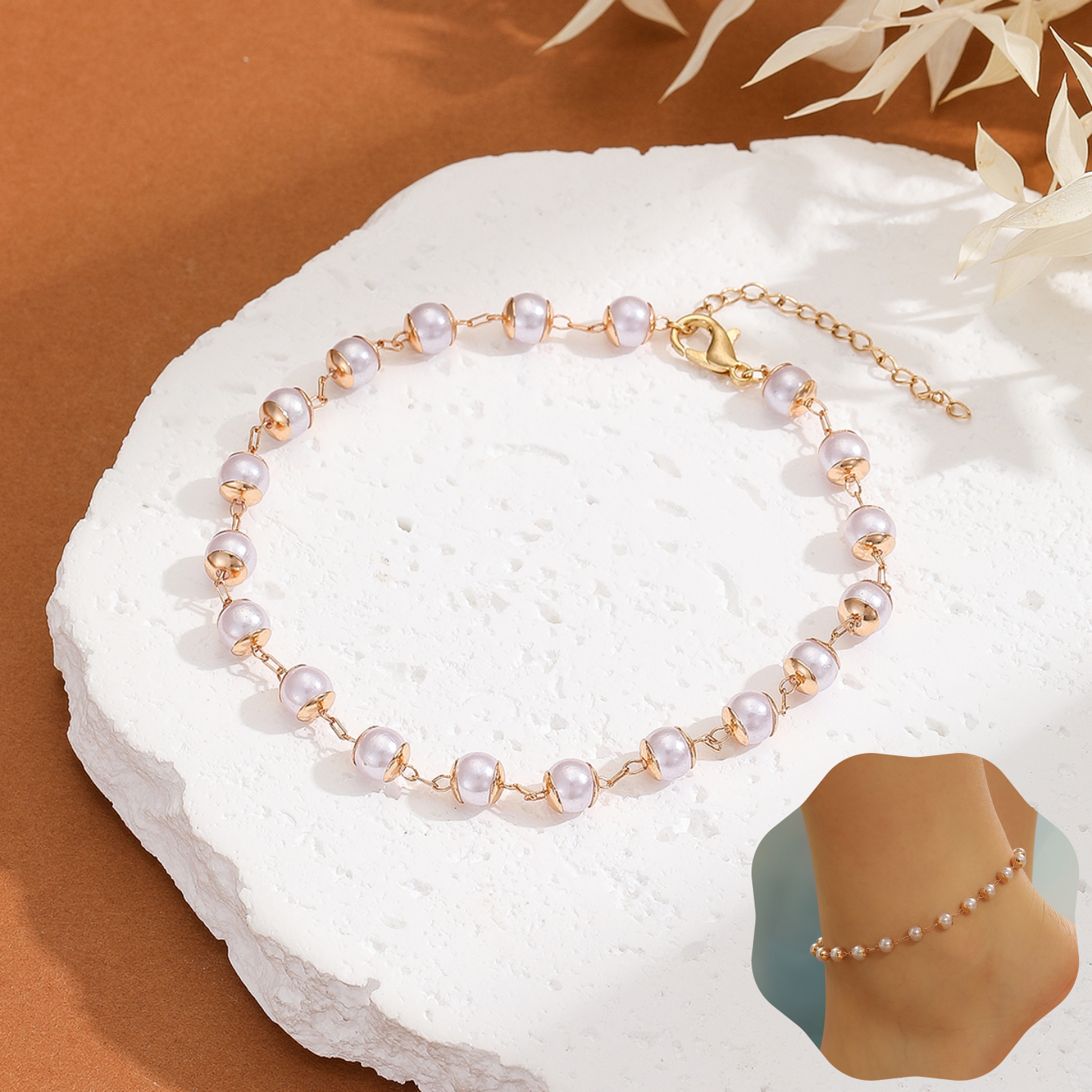 Fleepmart Fashion Vintage Anklet Pearl Link Chain Women Imitation Barefoot Sandal Anklet Jewelry Gifts