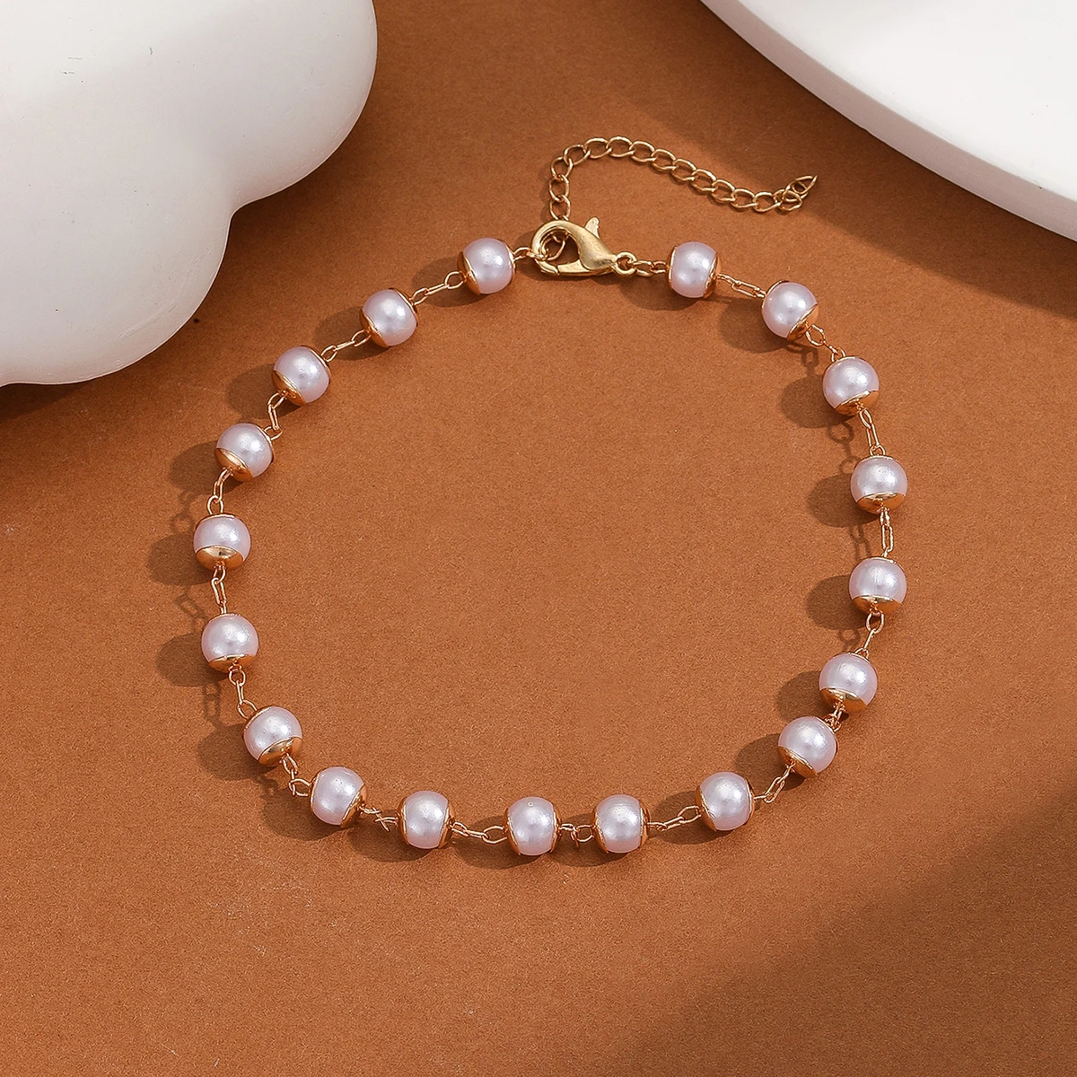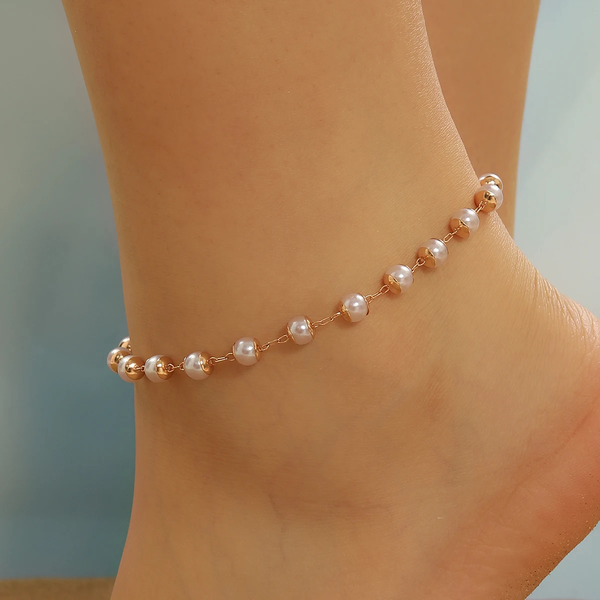 Fleepmart Fashion Vintage Anklet Pearl Link Chain Women Imitation Barefoot Sandal Anklet Jewelry Gifts