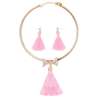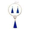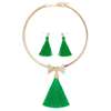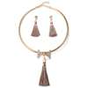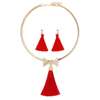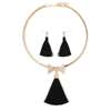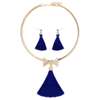 Fleepmart Fashion Women Tassel Jewelry Boho Pearl Chocker Necklace Crystal Drop Earrings Wedding Jewelry Set Tassel Necklace Earrings