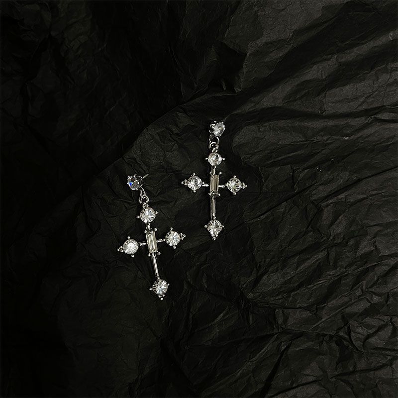 Fleepmart Fashion Zircon Crystal Cross Earrings For Women Korean Girls Daily Birthday Party Y2k Jewelry Gifts