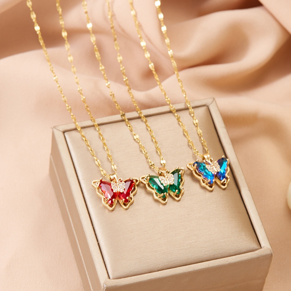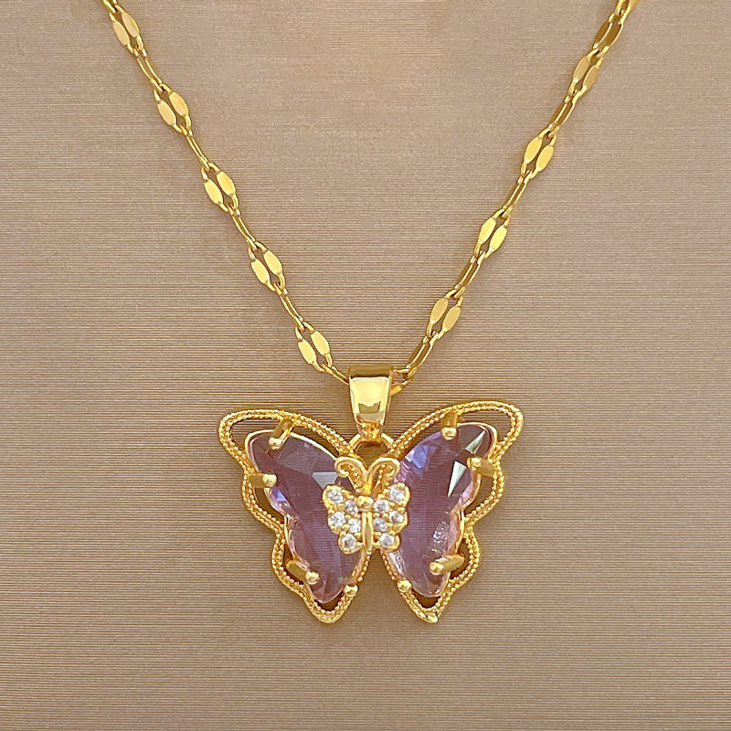 Fleepmart Fashionable Butterfly Pendant Necklace with Titanium Steel Chain and Shining Zircon Stone for Women