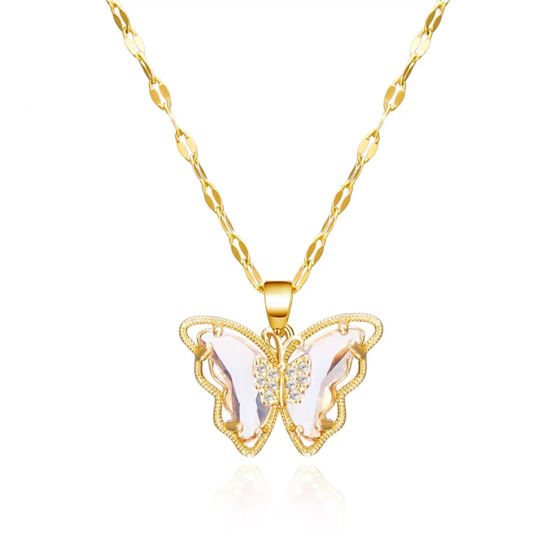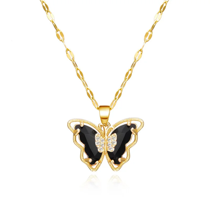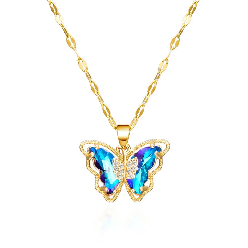 Fleepmart Fashionable Butterfly Pendant Necklace with Titanium Steel Chain and Shining Zircon Stone for Women