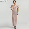 Fleepmart fashionn Dubai Designer Pink Short Sleeves Evening Dress New Mermaid Fashion Womens Formal Evening Gowns 2019 Serene Hill QA8019