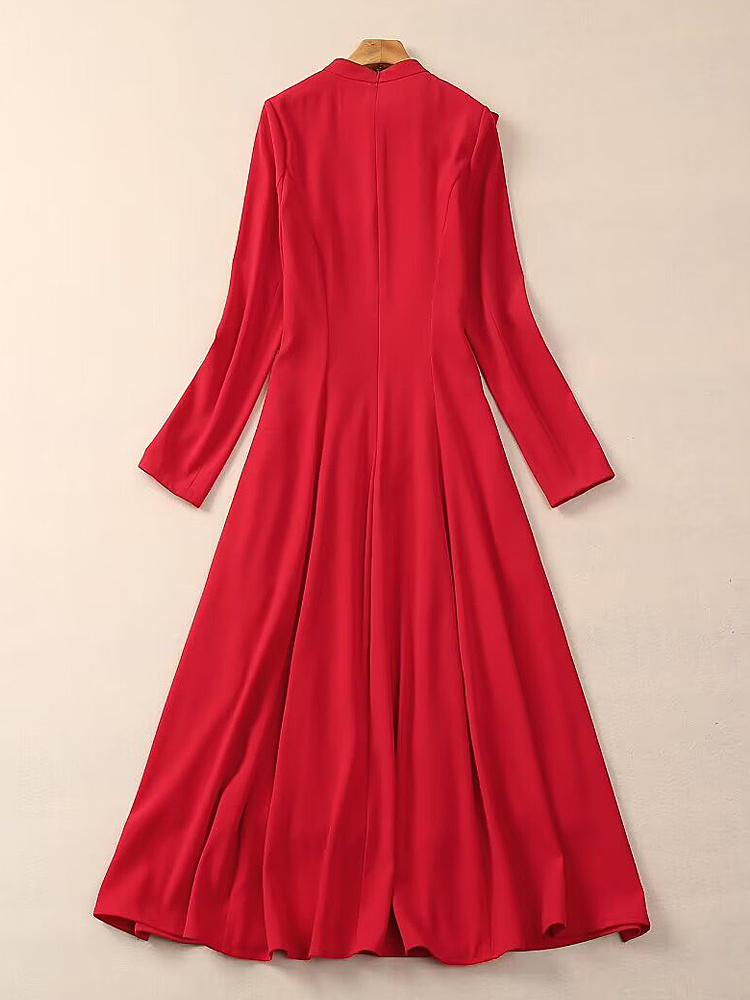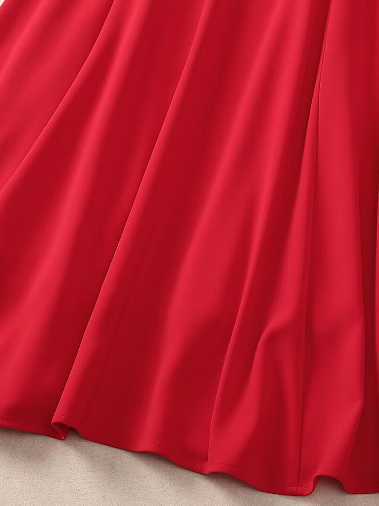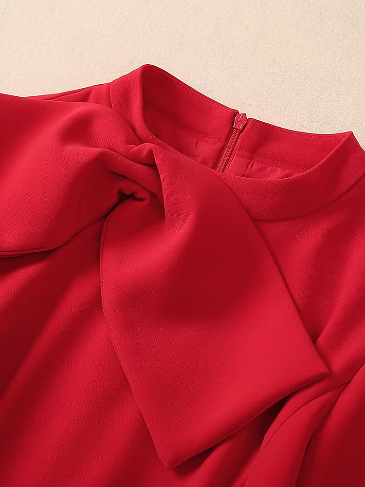 Fleepmart Female Catwalk Dress Spring High Quality Fashion Party Red Bow Elegant Sweet Pretty Classic Slim Fit Casual Girls Midi Dresses
