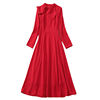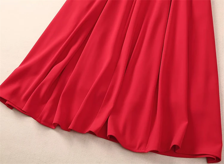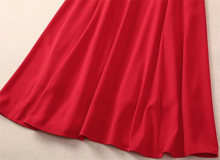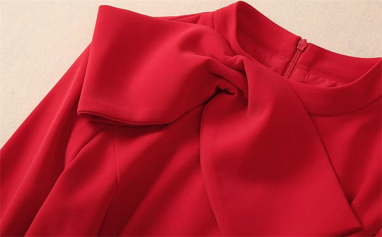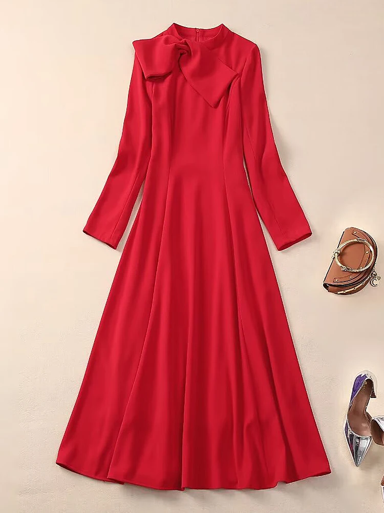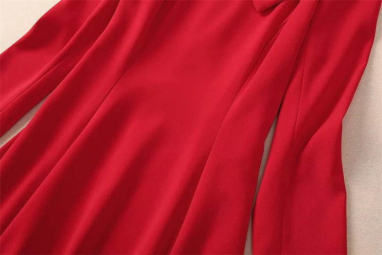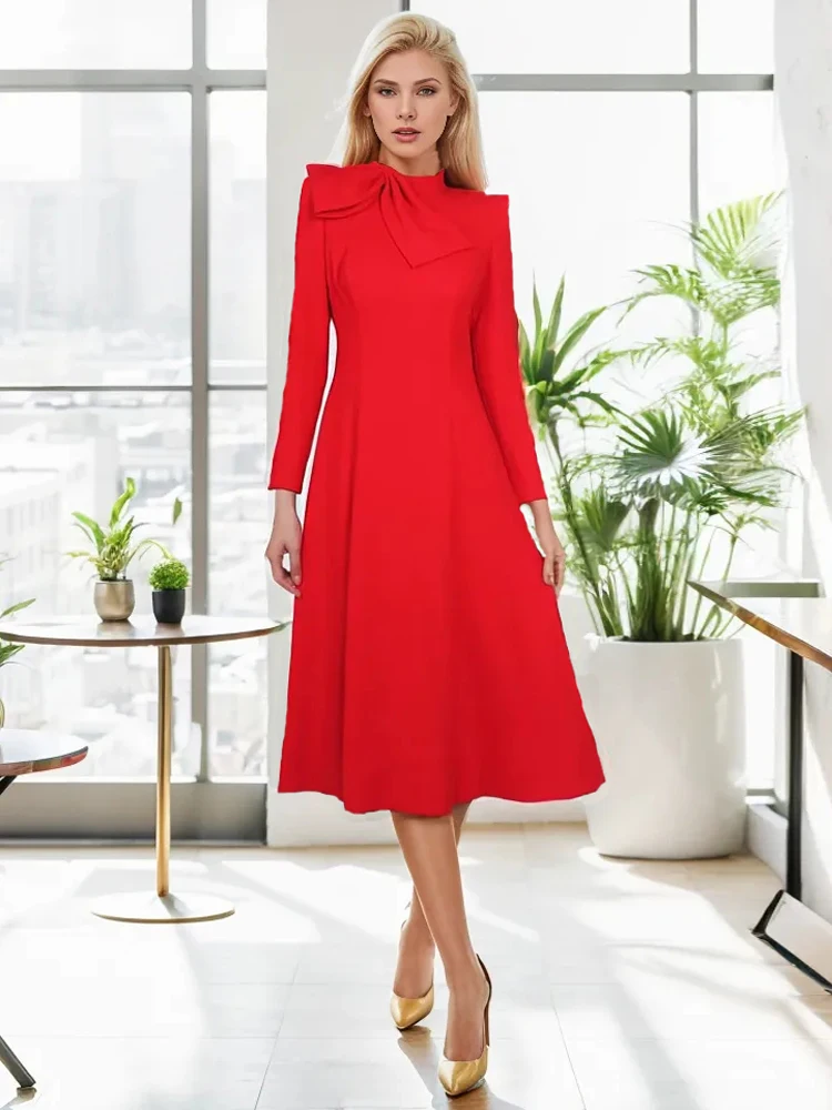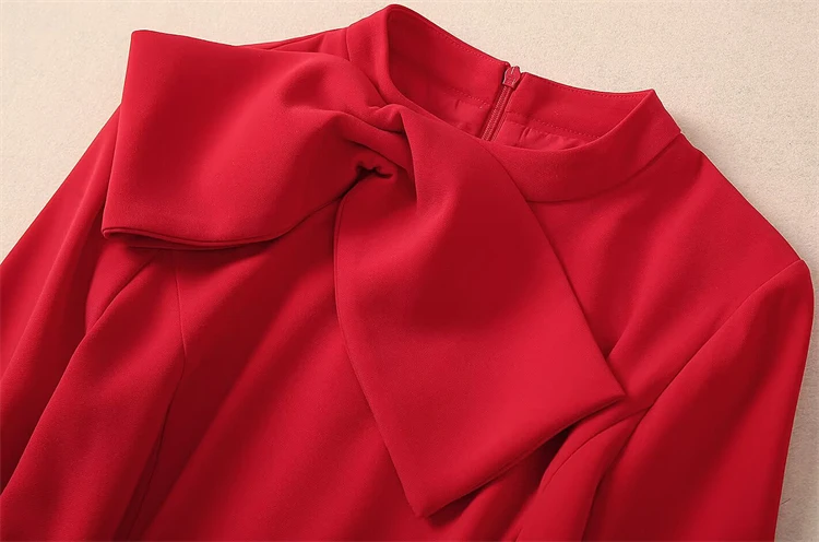 Fleepmart Female Catwalk Dress Spring High Quality Fashion Party Red Bow Elegant Sweet Pretty Classic Slim Fit Casual Girls Midi Dresses