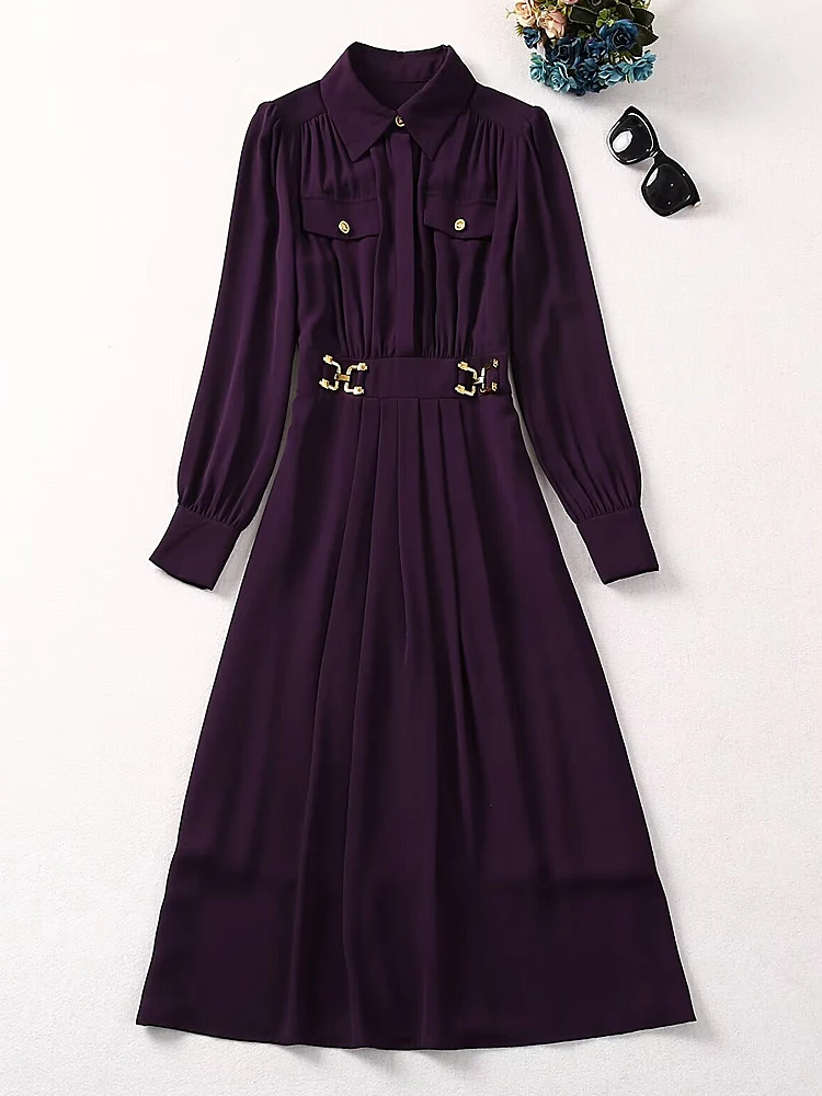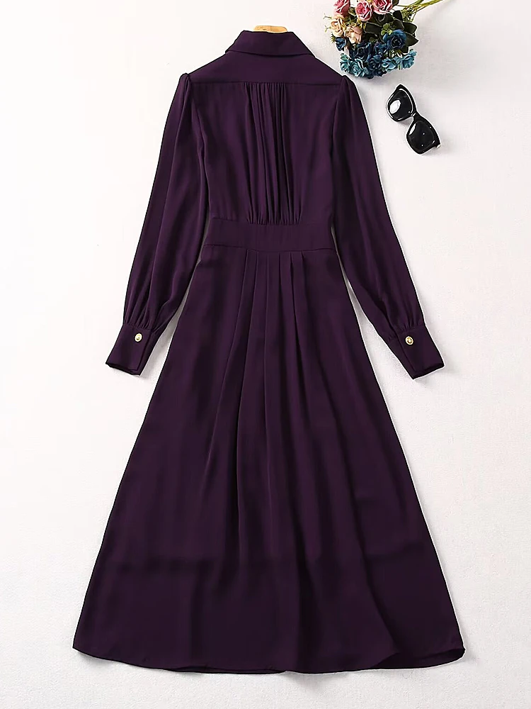 Fleepmart Female Dresses Runway New High Quality New Spring Fashion Pleated Slim Fit Elegant Pretty Office Catwalk Long Sleeve Midi Dress