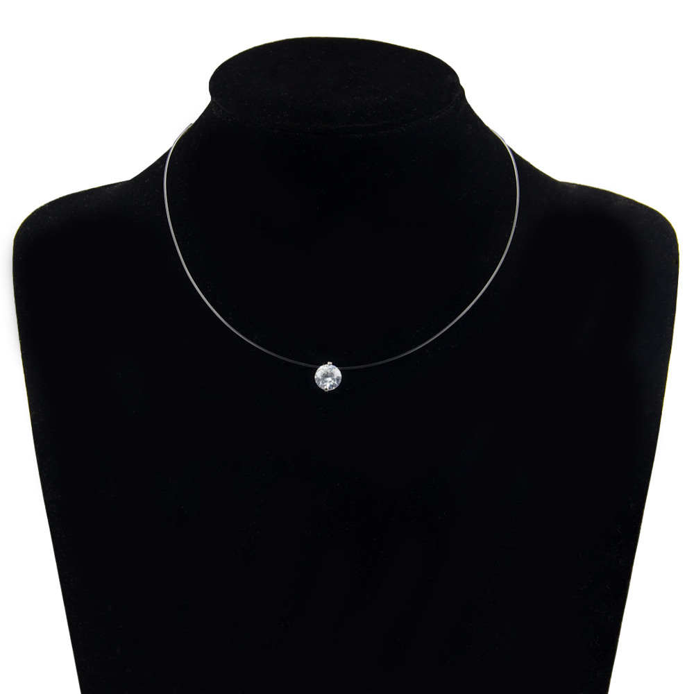 Fleepmart Female Transparent Fishing Line Necklace Silver Plated Invisible Chain Women Rhinestone Choker Necklace Collier Femme