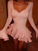 Fleepmart Flare Sleeve Ruffle Sexy Mini Dress Women Robe Irregular Single-breasted V Neck High Waist Slim A-line Club Dress
