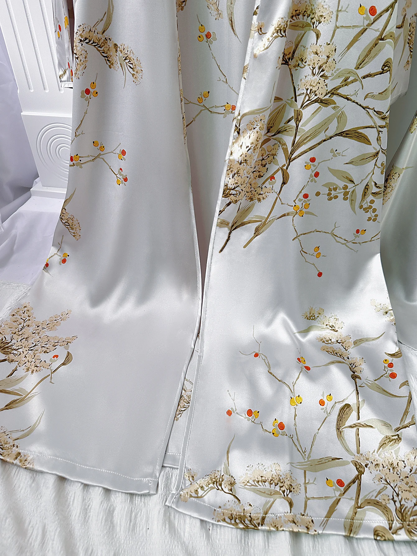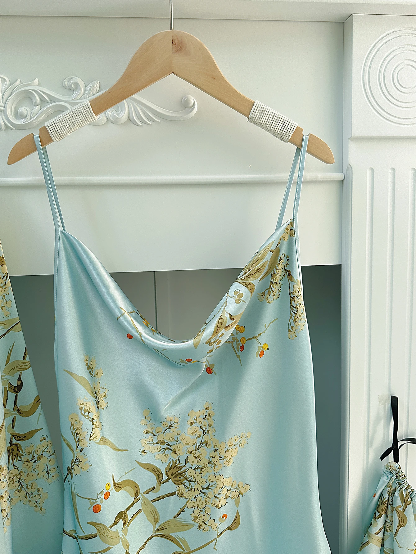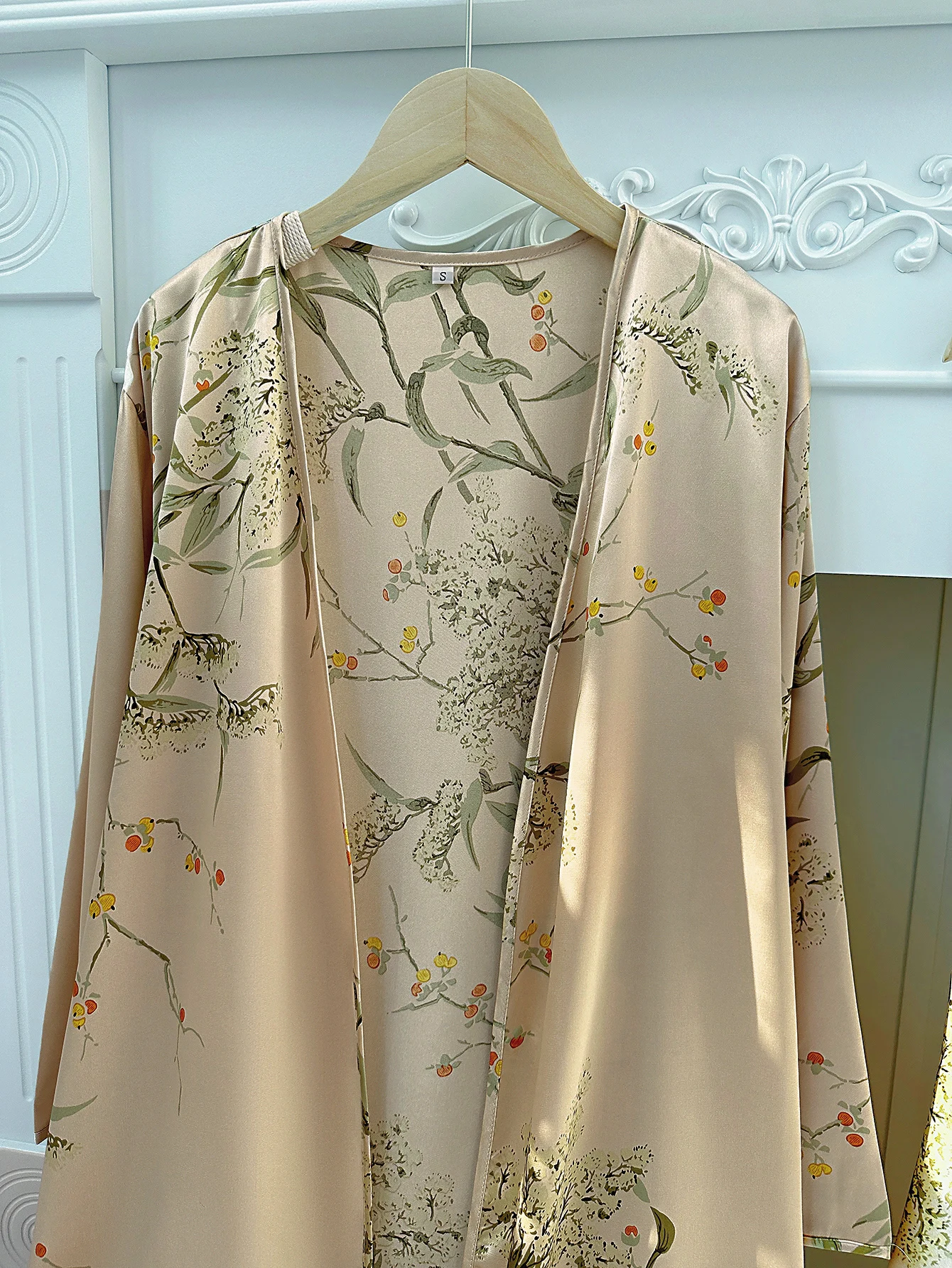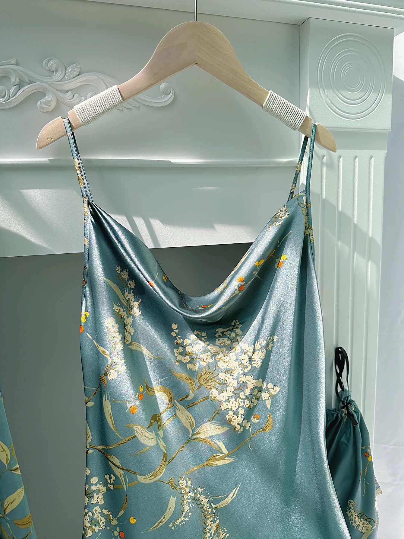 fleepmart Floral Print Pajama Set Long Sleeve Robe With Belt V Neck Slip Dress Women’s Sleepwear Loungewear