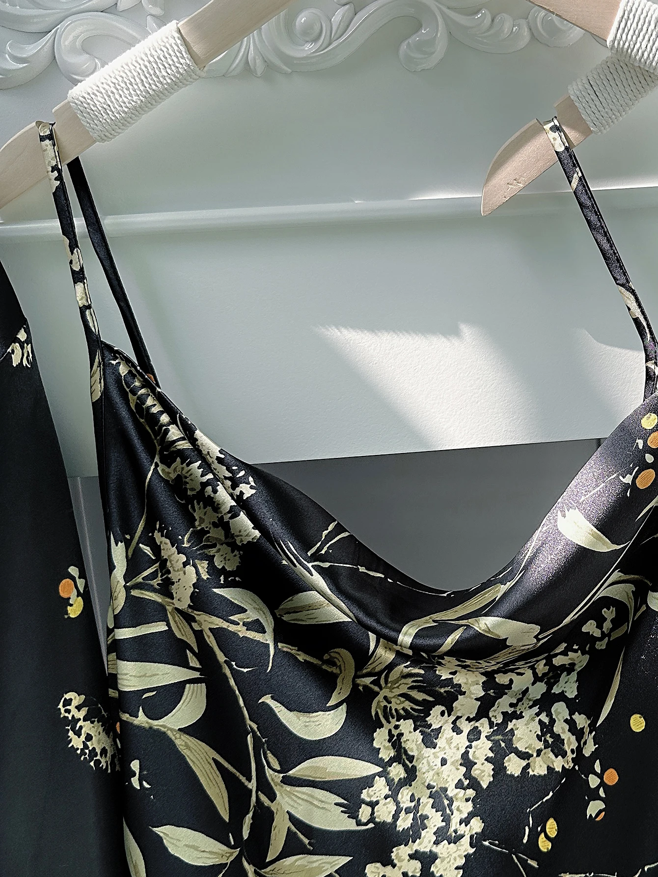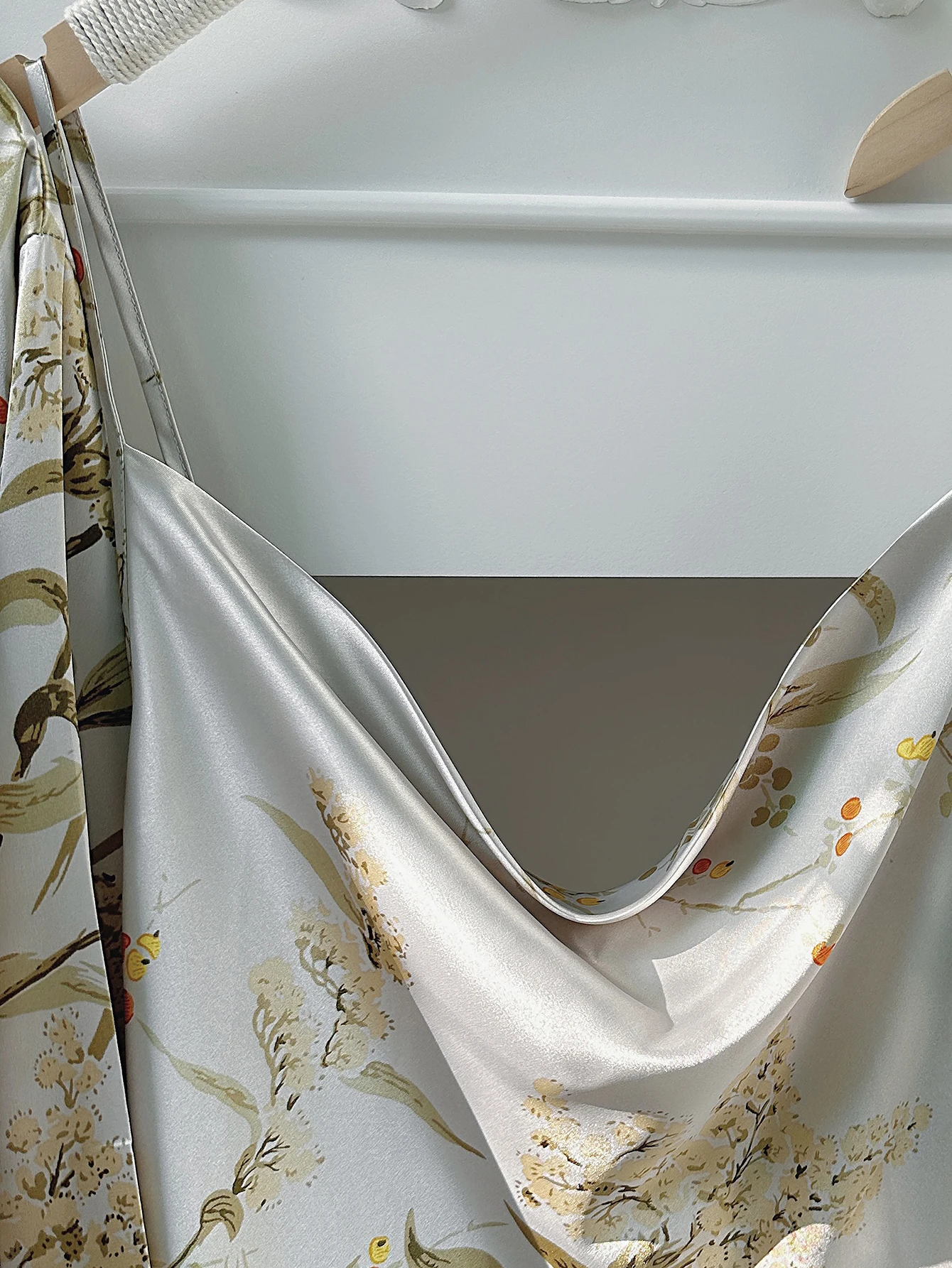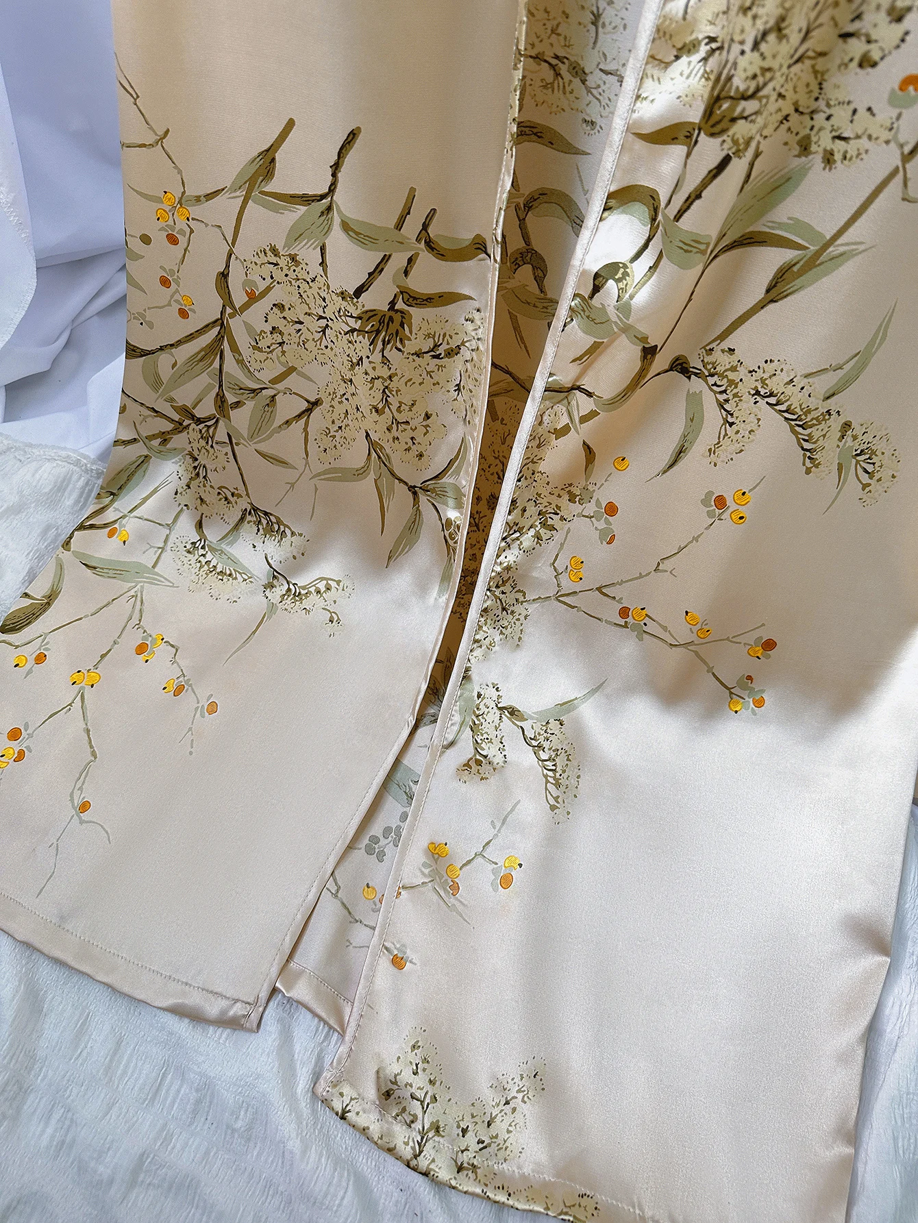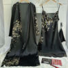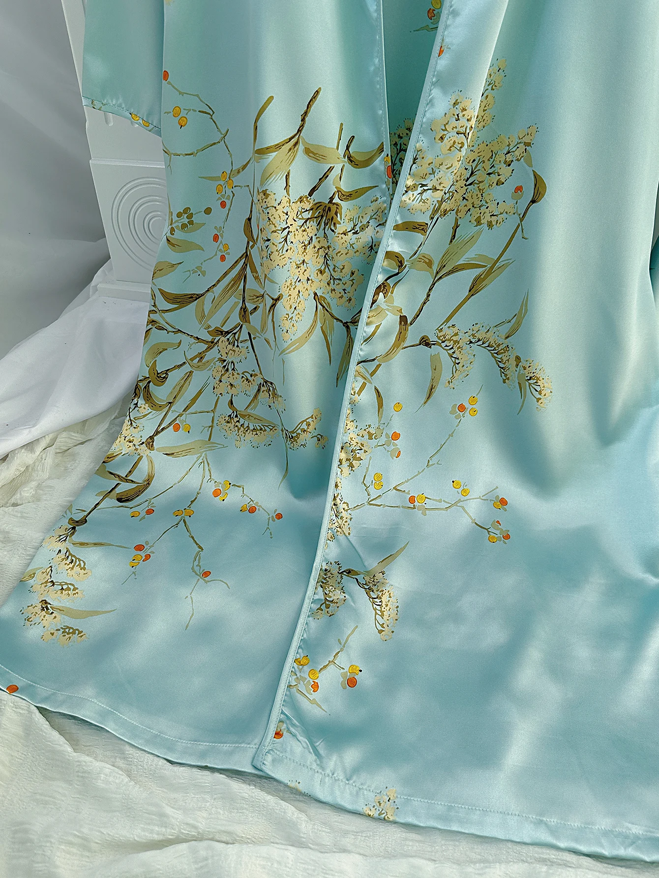 fleepmart Floral Print Pajama Set Long Sleeve Robe With Belt V Neck Slip Dress Women’s Sleepwear Loungewear