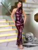 Fleepmart Floral Sequined High Neck Bodycon Slim Elegant Sleeveless Evening Party Dress Night Prom Gown