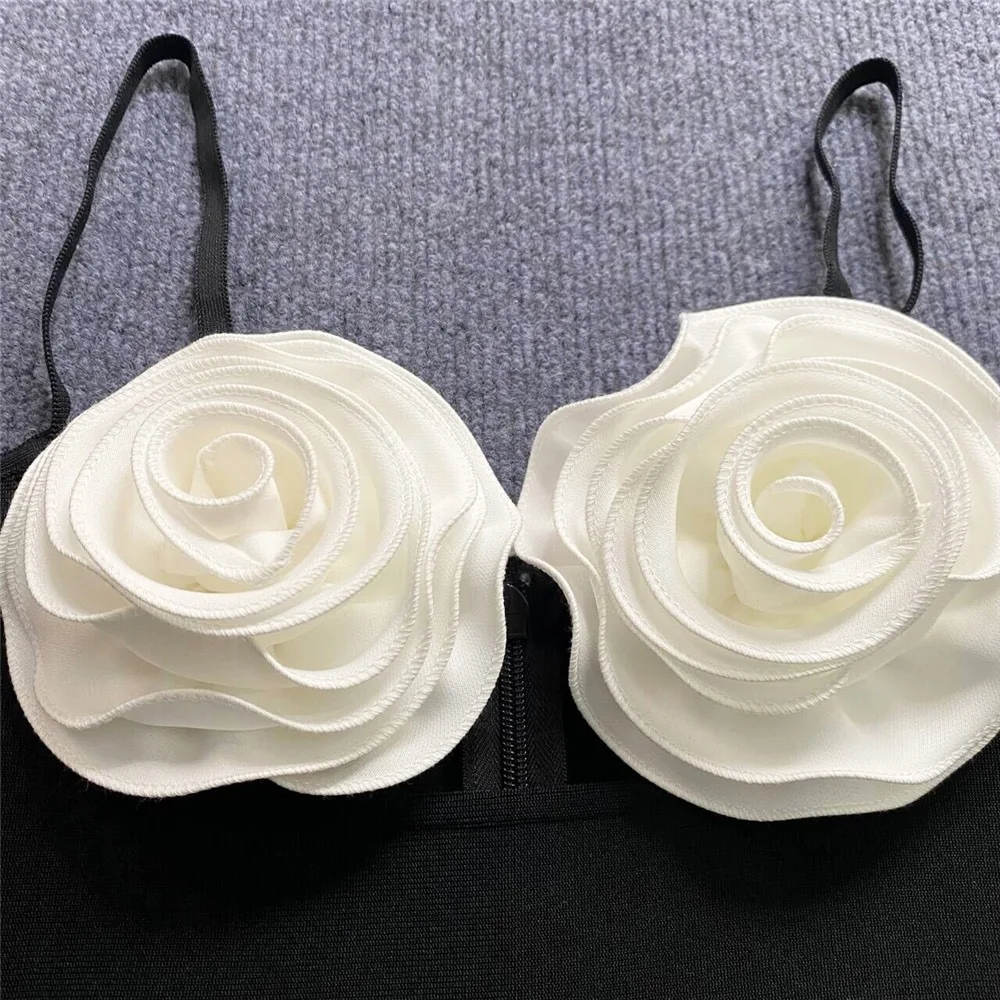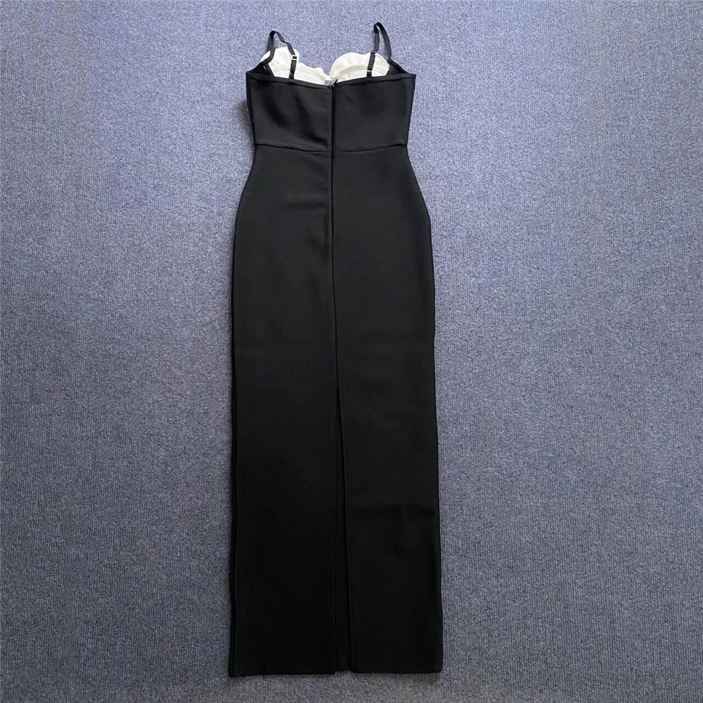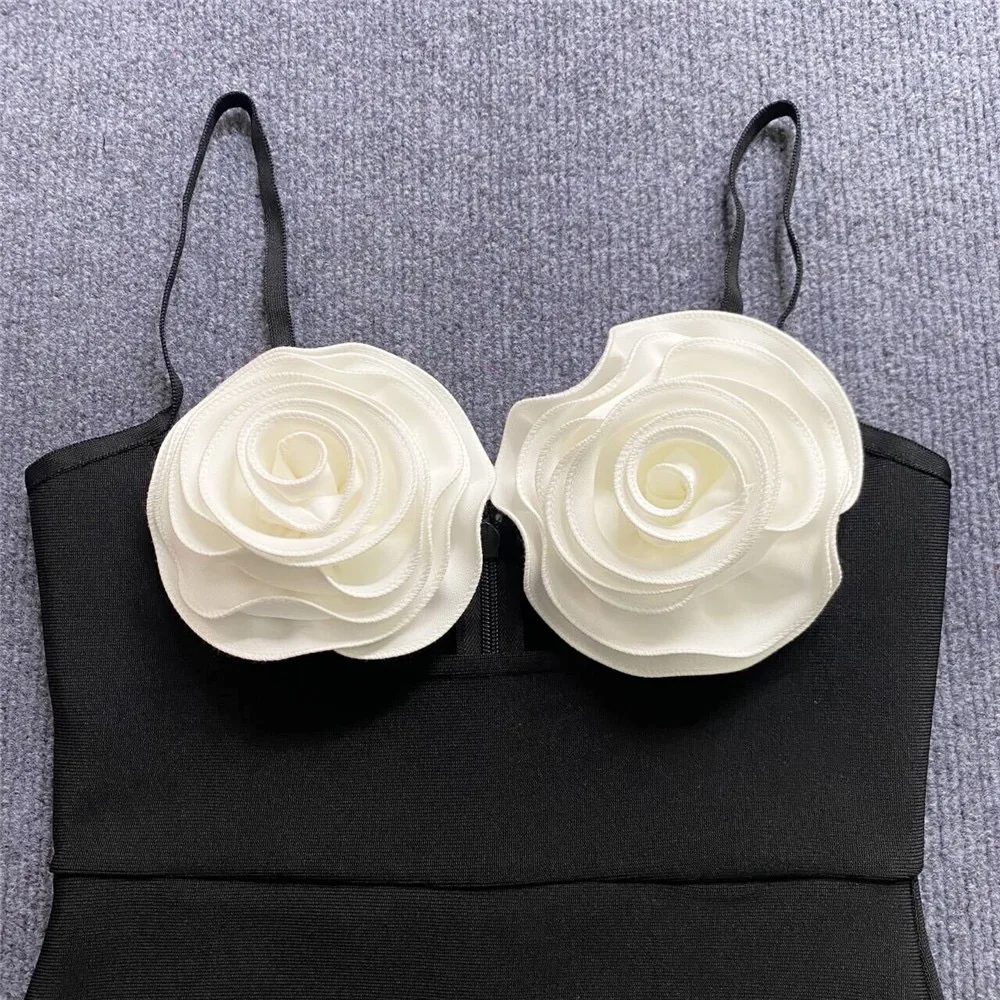 Fleepmart Flower Appliques Sexy Hollow Out Bandage Sexy Spaghetti Strap Maxi Celebrity Evening Runway Party Dress