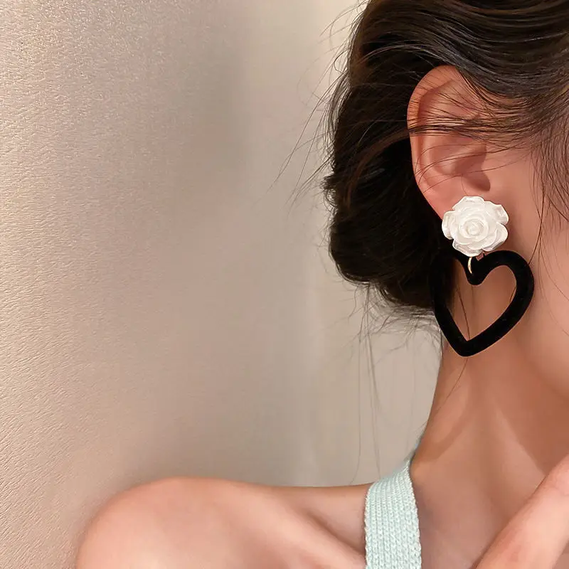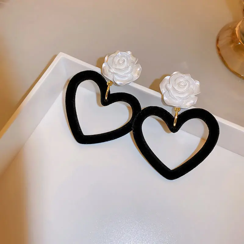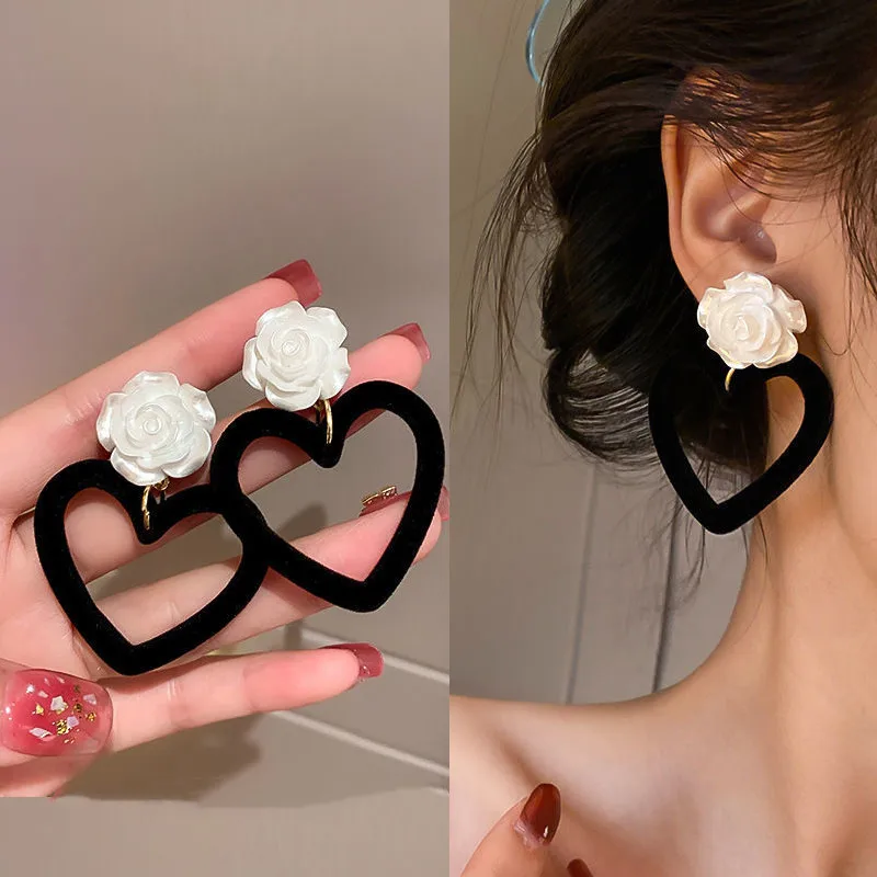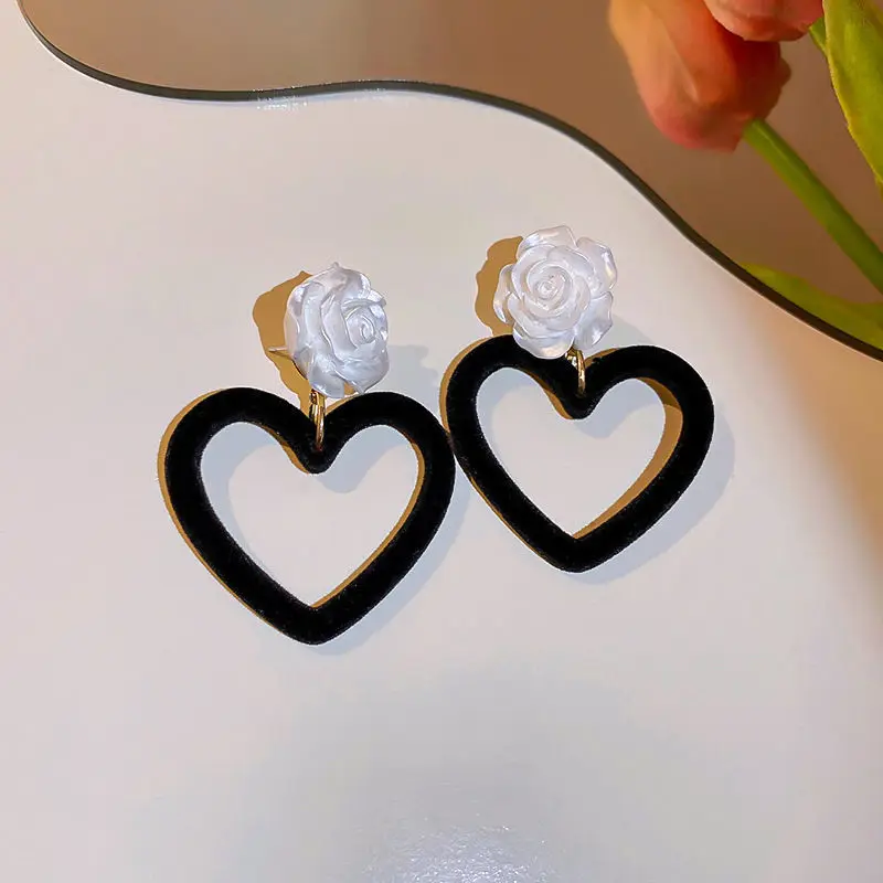 Fleepmart Flower Heart Drop Earrings for Women Vintage Gothic Black Hollow Art Earring Exaggerated Resin Forest Jewelry Gifts