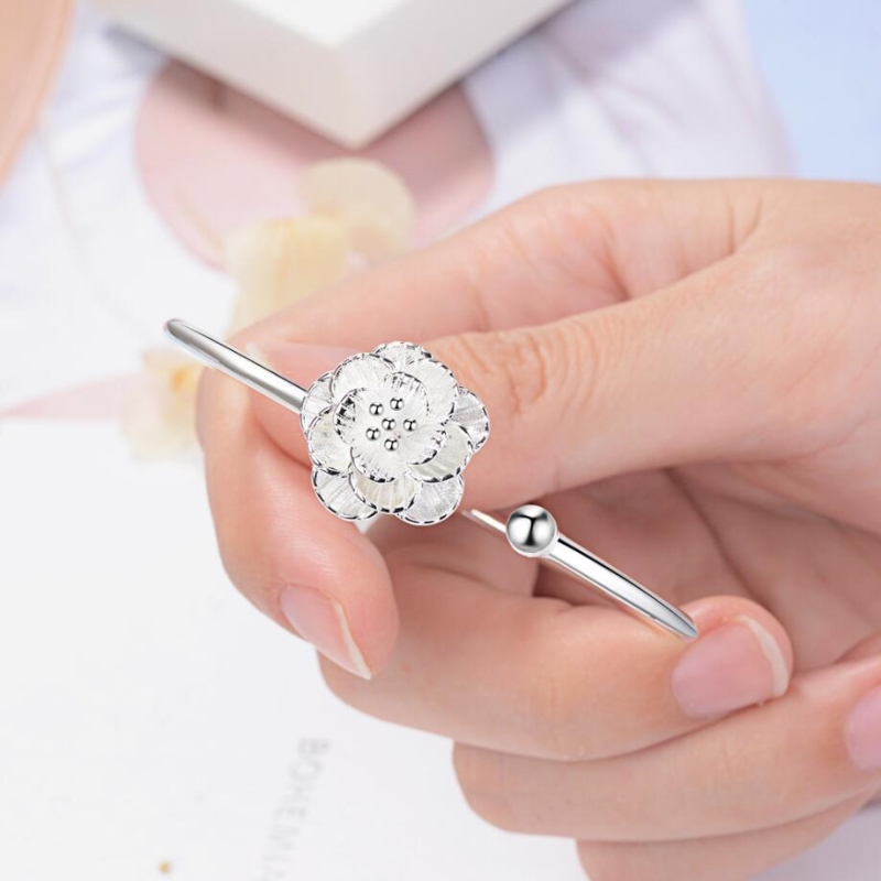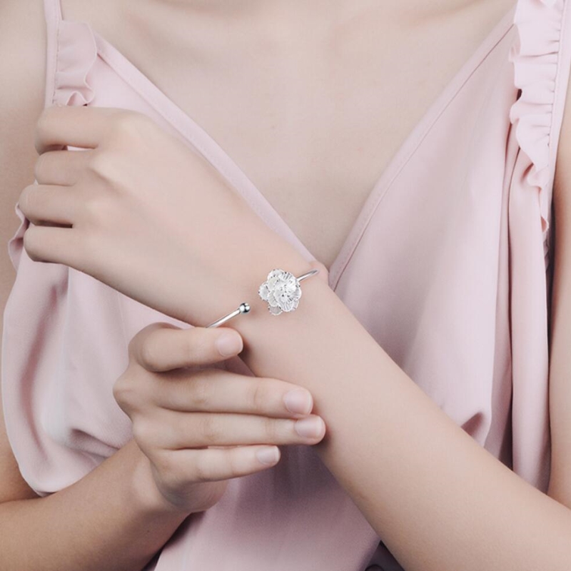 Fleepmart Flower Korean Sweet Cherry Blossom Open 925 Sterling Silver Temperament Female Literary Trendy Resizable Bracelets