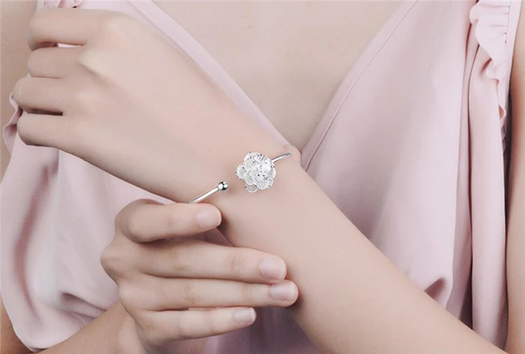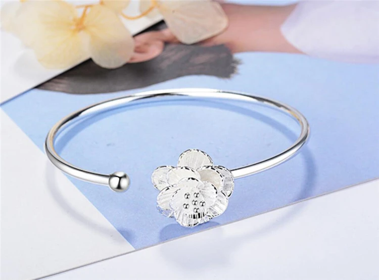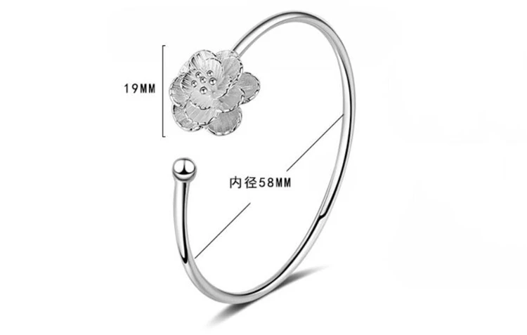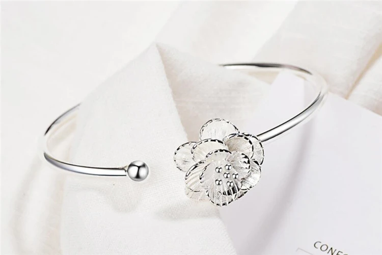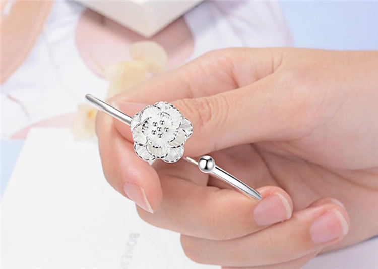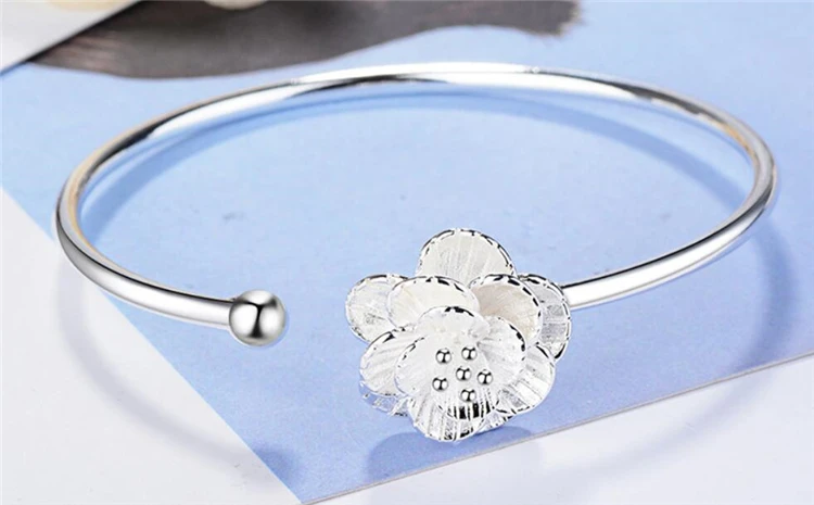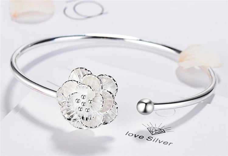Fleepmart Flower Korean Sweet Cherry Blossom Open 925 Sterling Silver Temperament Female Literary Trendy Resizable Bracelets