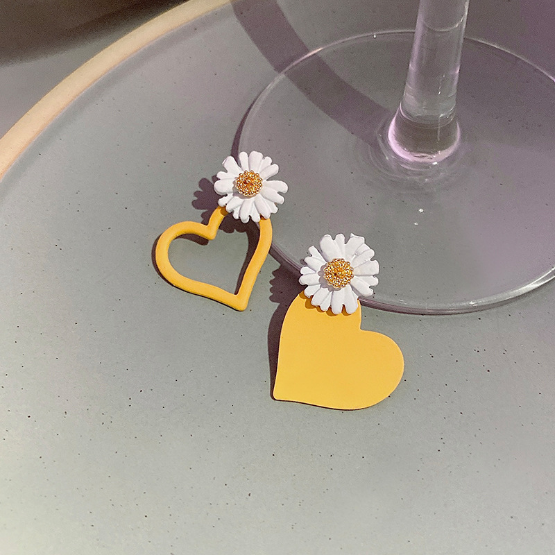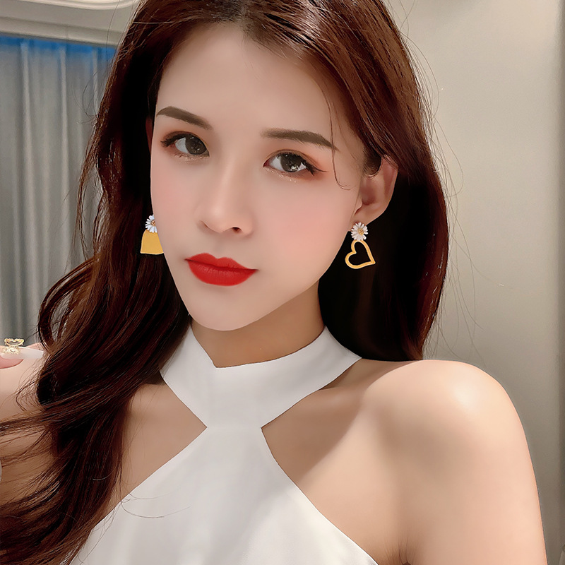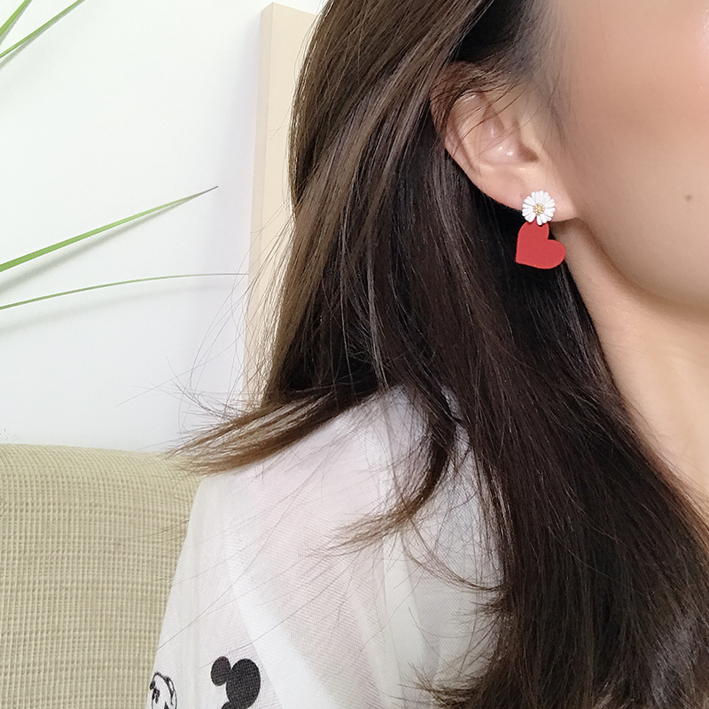 Fleepmart Flower Stud Earrings for Women Red White Color Sweet Heart Asymmetrical Earring Party Wedding Jewelry