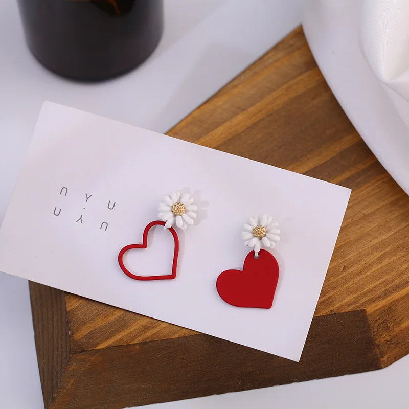 Fleepmart Flower Stud Earrings for Women Red White Color Sweet Heart Asymmetrical Earring Party Wedding Jewelry