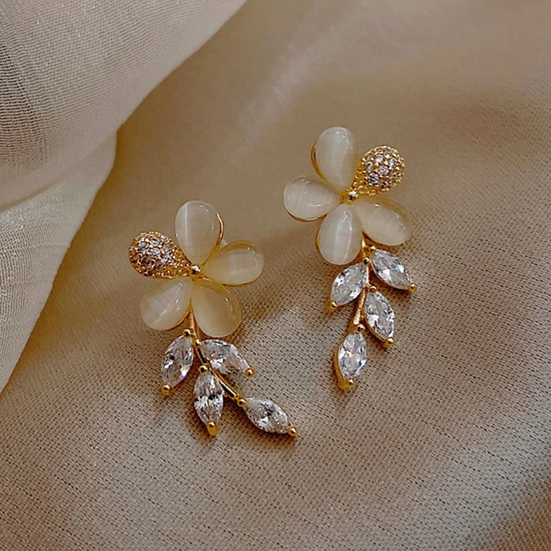 Fleepmart Flower Zircon Stud Earrings For Women Leaves Geometric Rhinestone Earring Girl Party Birthday Christmas Jewelry Gifts