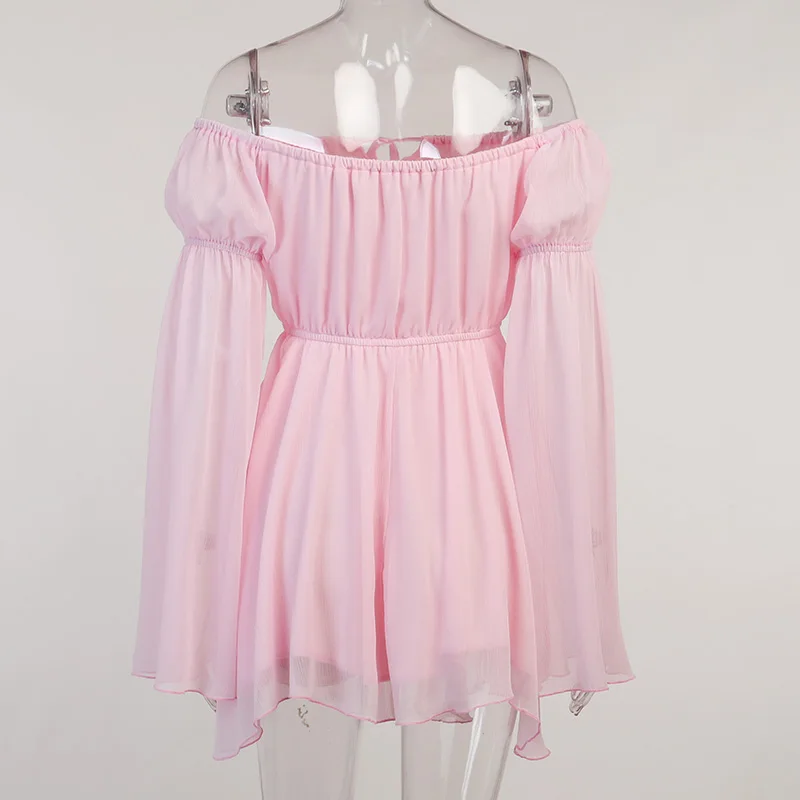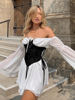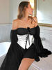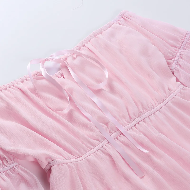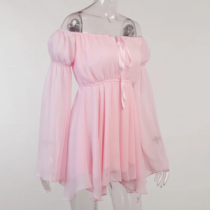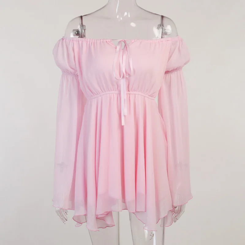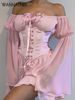 Fleepmart Folds Corsets Flare Sleeve Slash Neck Loose Dresses Japanese Y2K Patchwork Pleated Elegant New Summer Sexy Party Dress