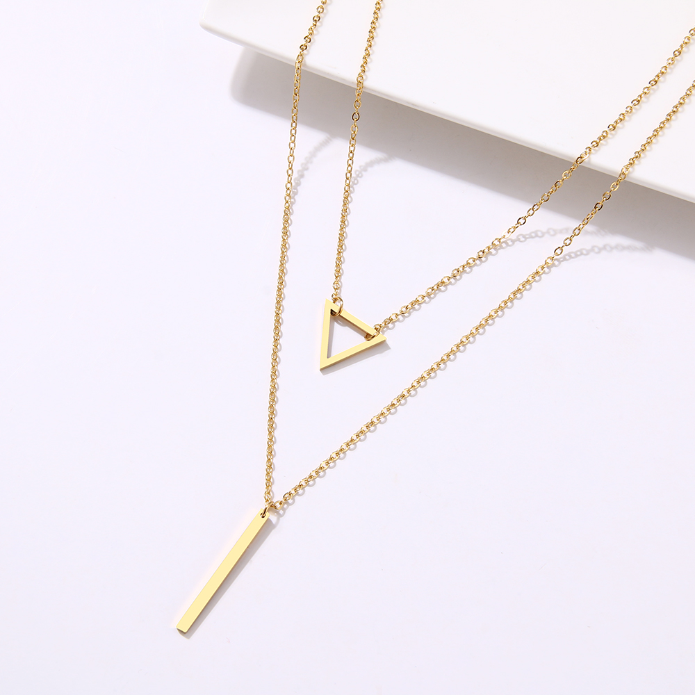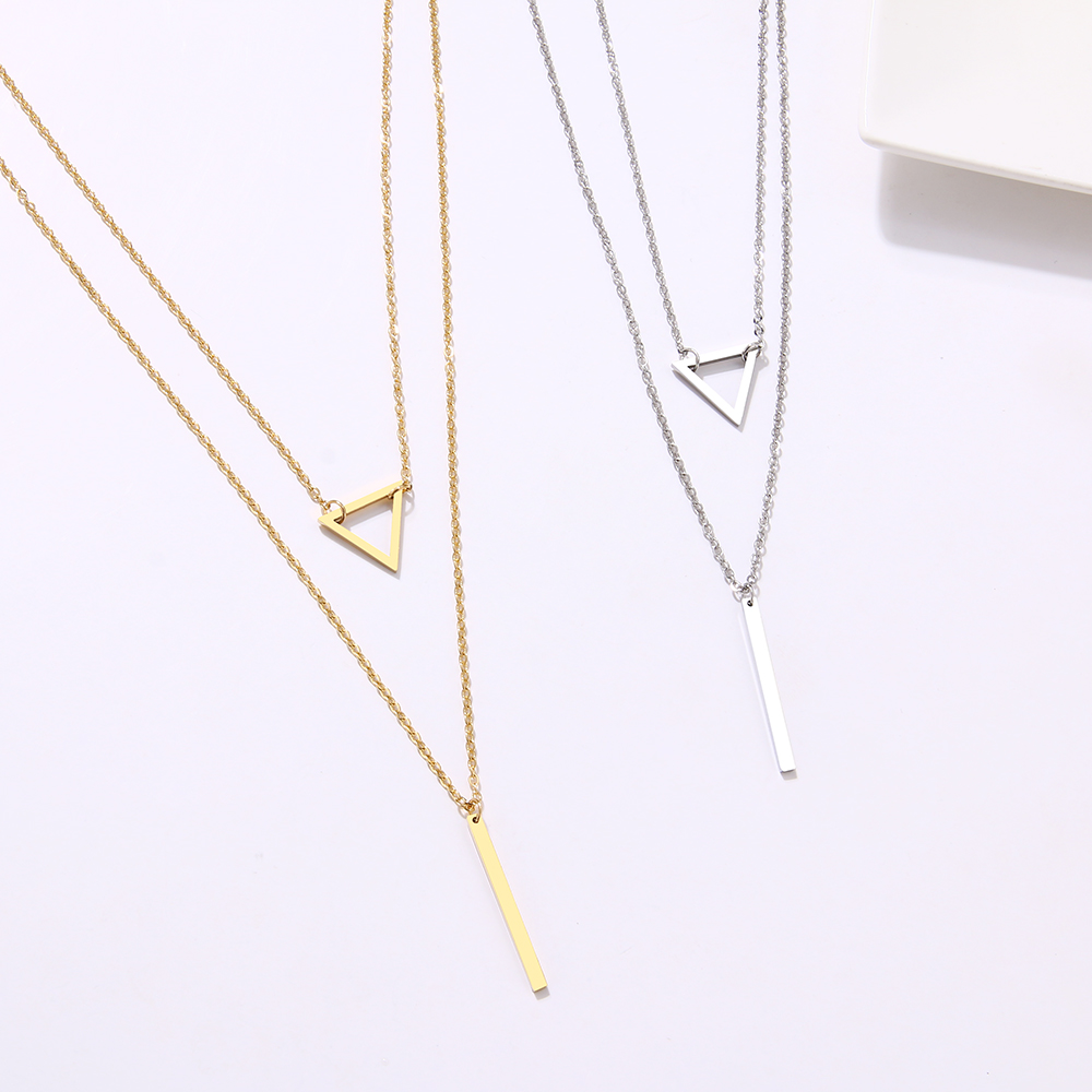 Fleepmart For Women Necklace Double Pendant Hollow Triangle and Stick Stainless Steel Pendant Creative Jewelry