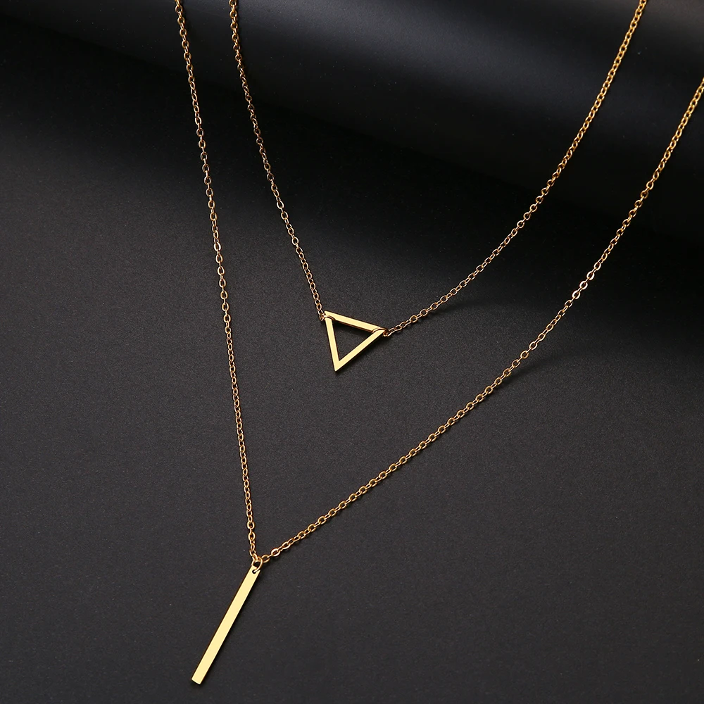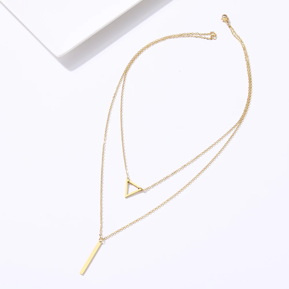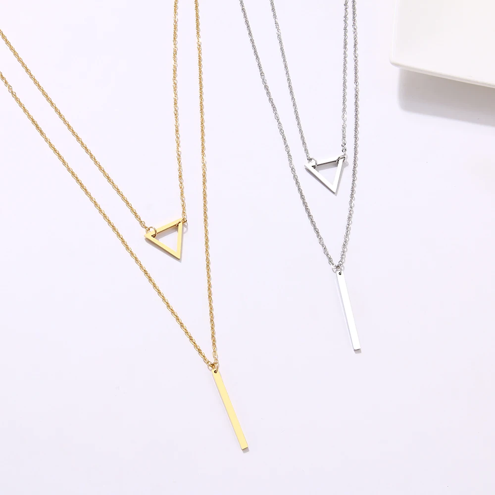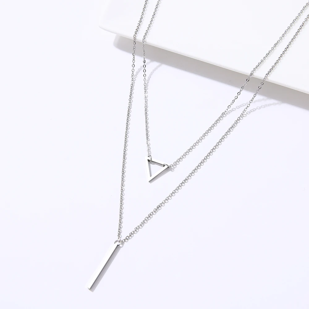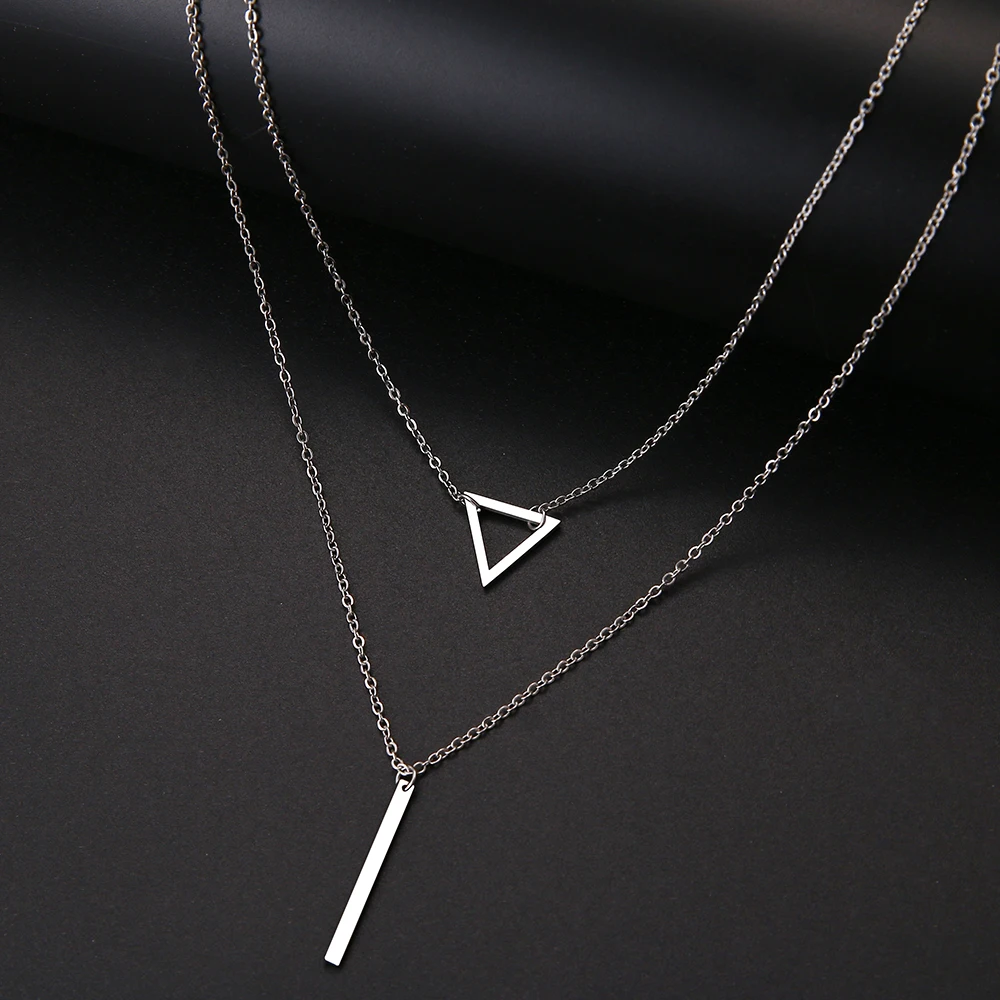 Fleepmart For Women Necklace Double Pendant Hollow Triangle and Stick Stainless Steel Pendant Creative Jewelry