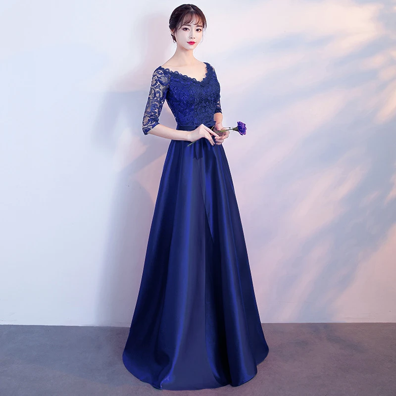Fleepmart Formal Blue Color Lace Plus size Evening Dresses Party Elegant Gowns Prom Dress