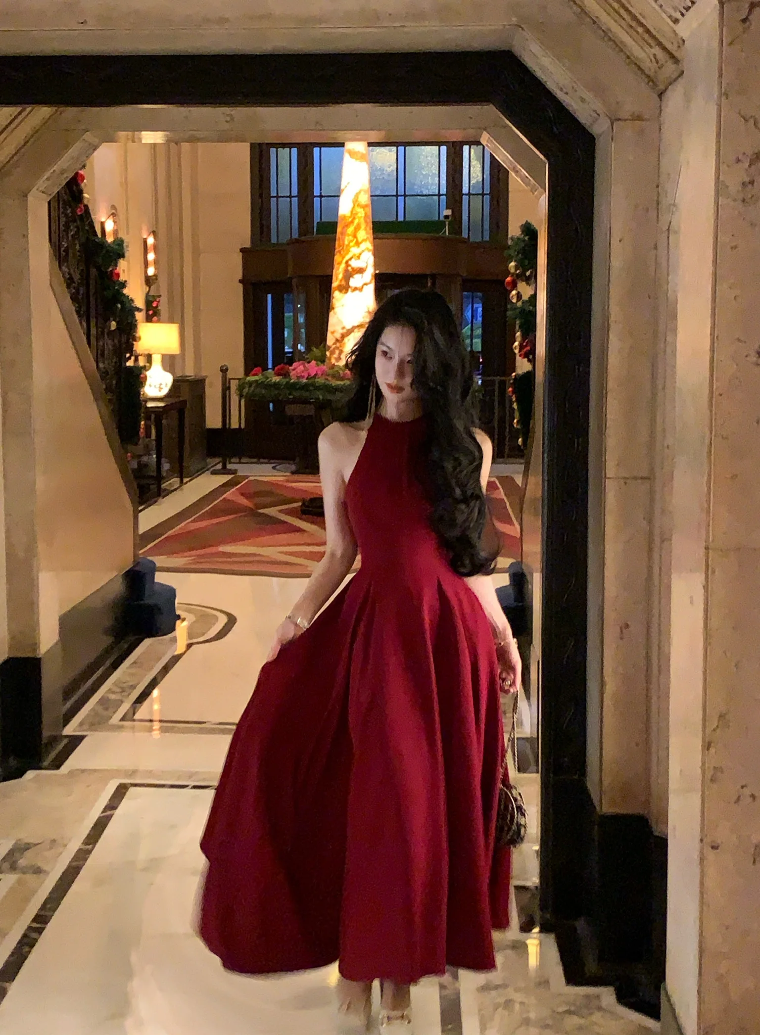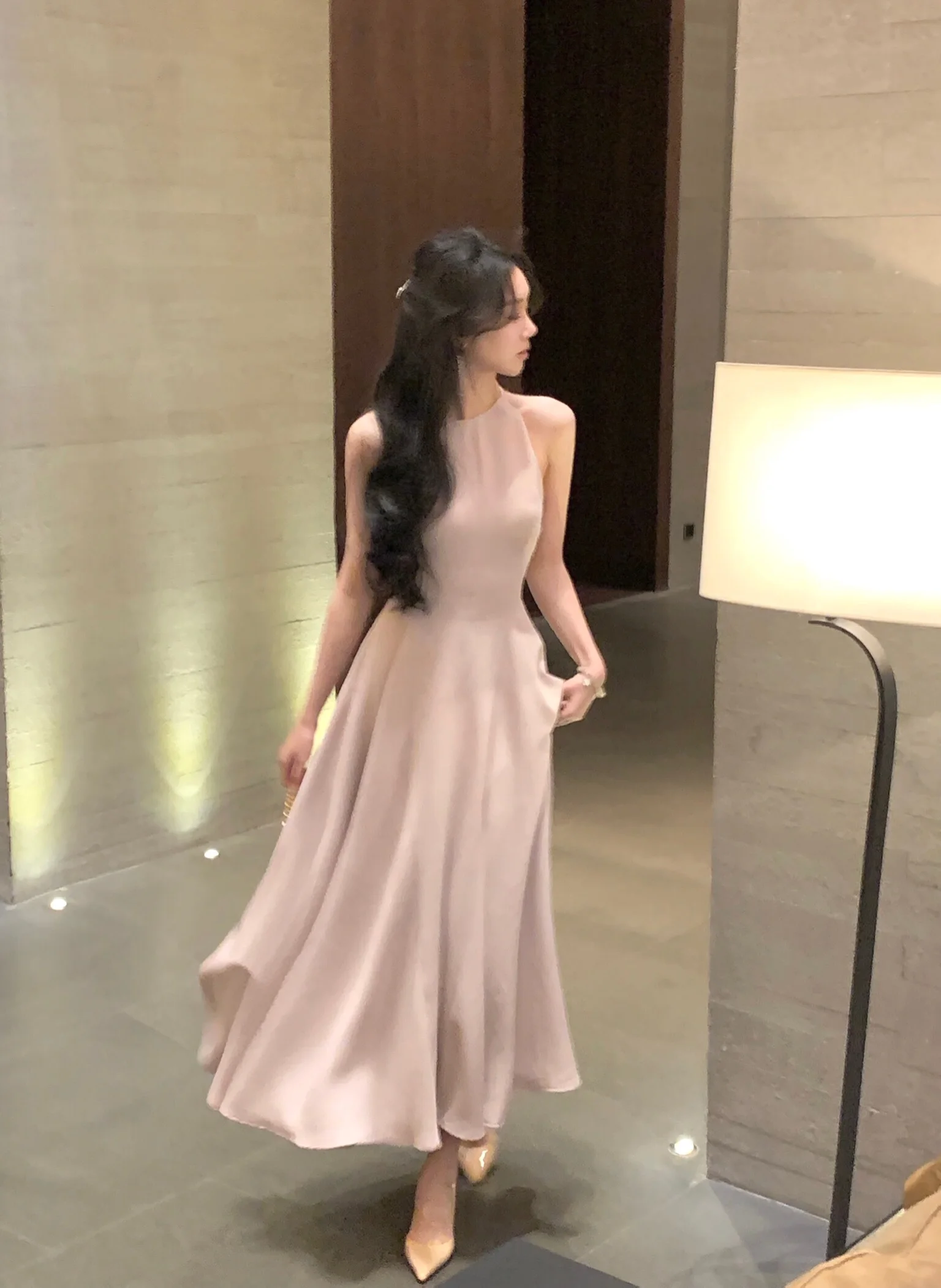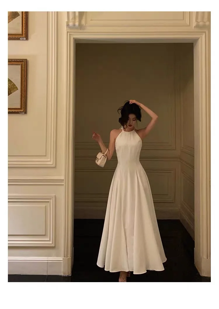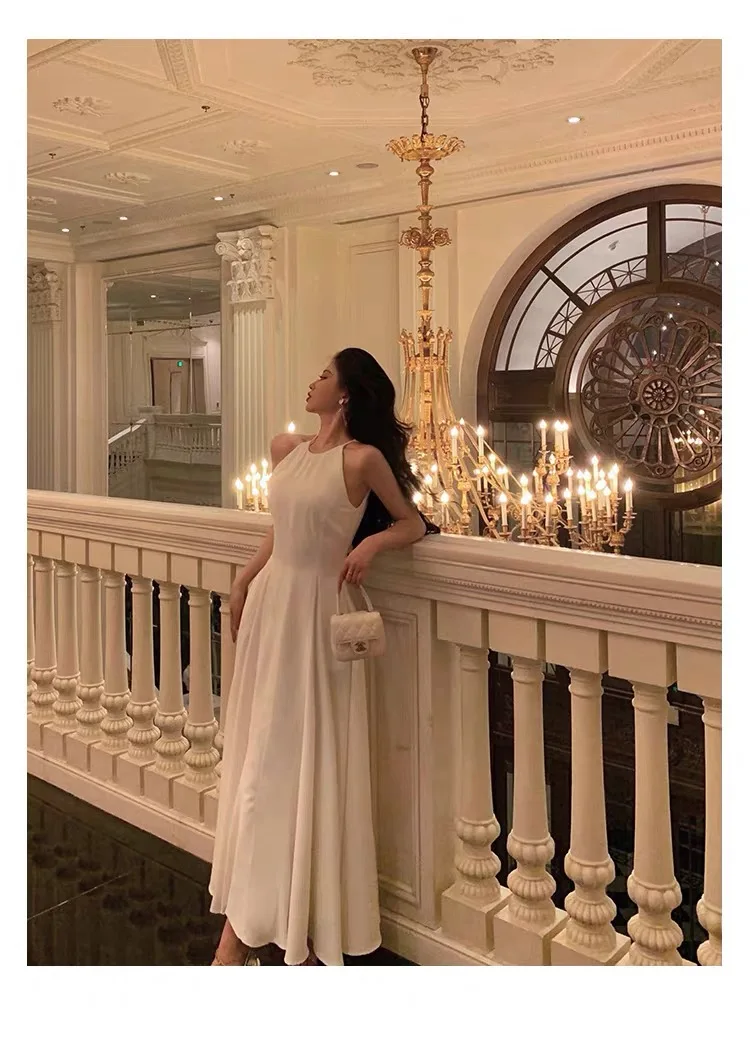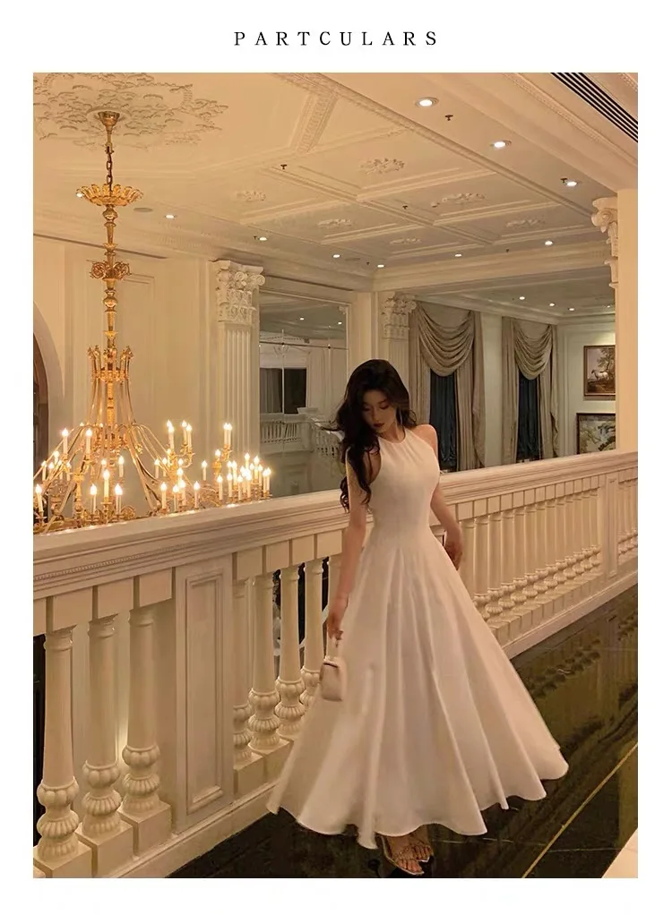 Fleepmart France Vintage Halter Evening Party Long Dresses for Women Solid Sleeveless A-line Princess Wedding Prom Robe New Spring Vestido