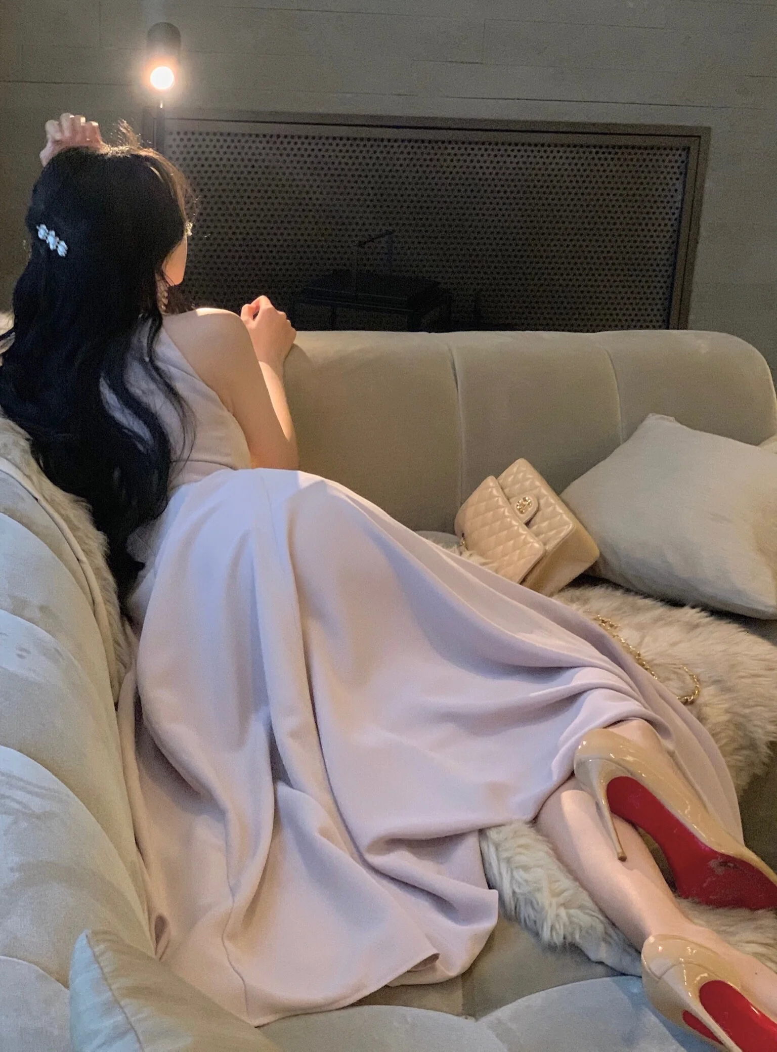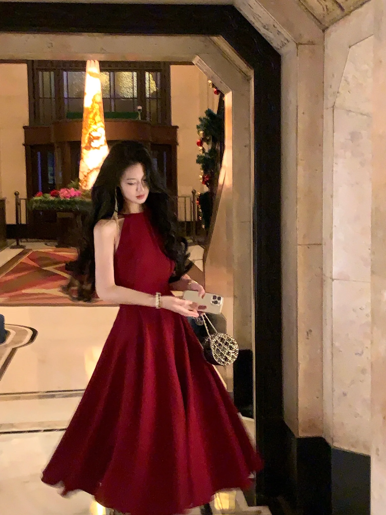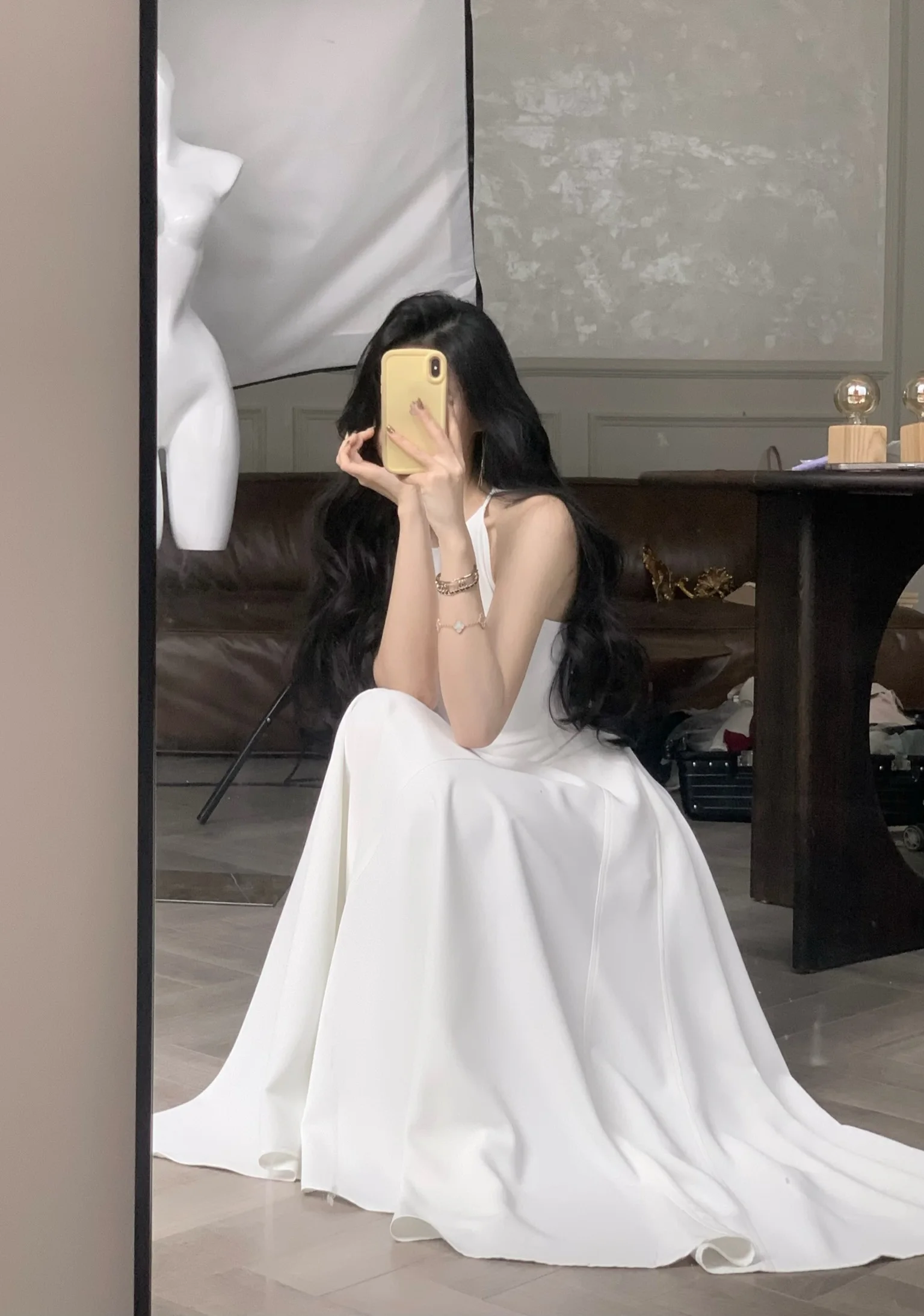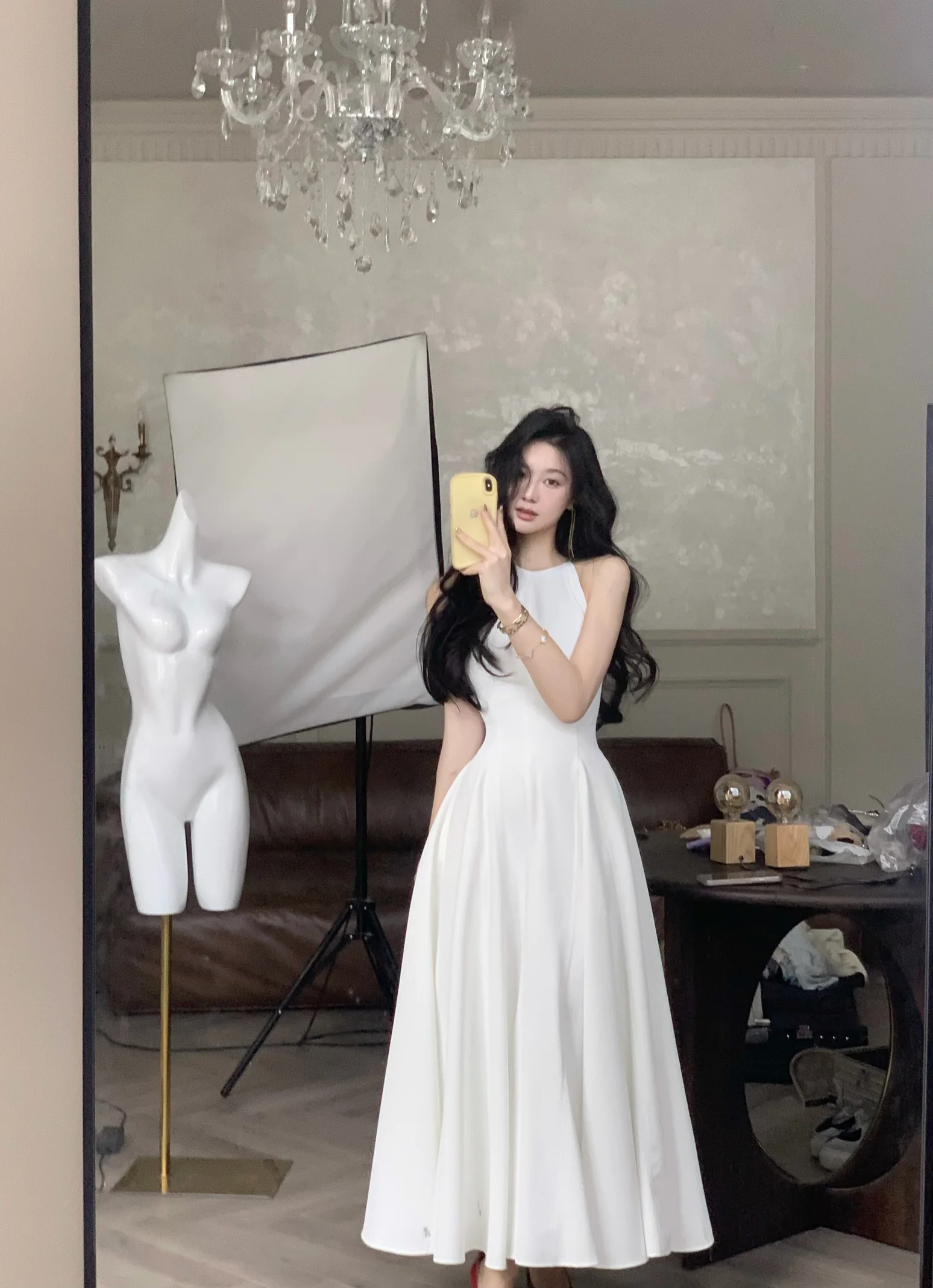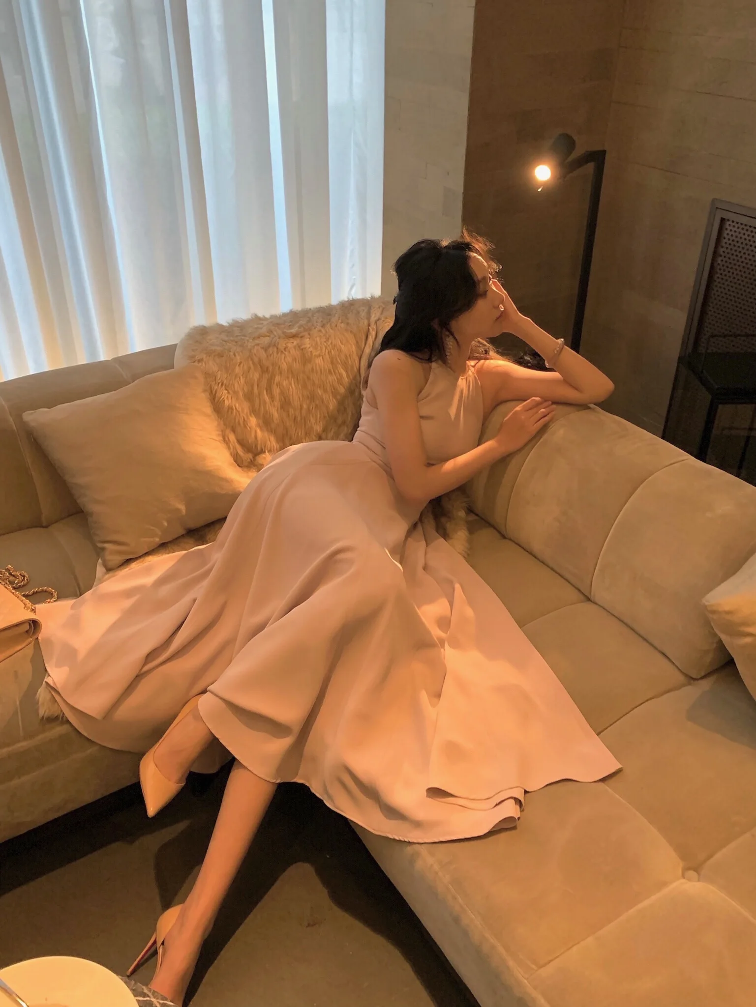 Fleepmart France Vintage Halter Evening Party Long Dresses for Women Solid Sleeveless A-line Princess Wedding Prom Robe New Spring Vestido